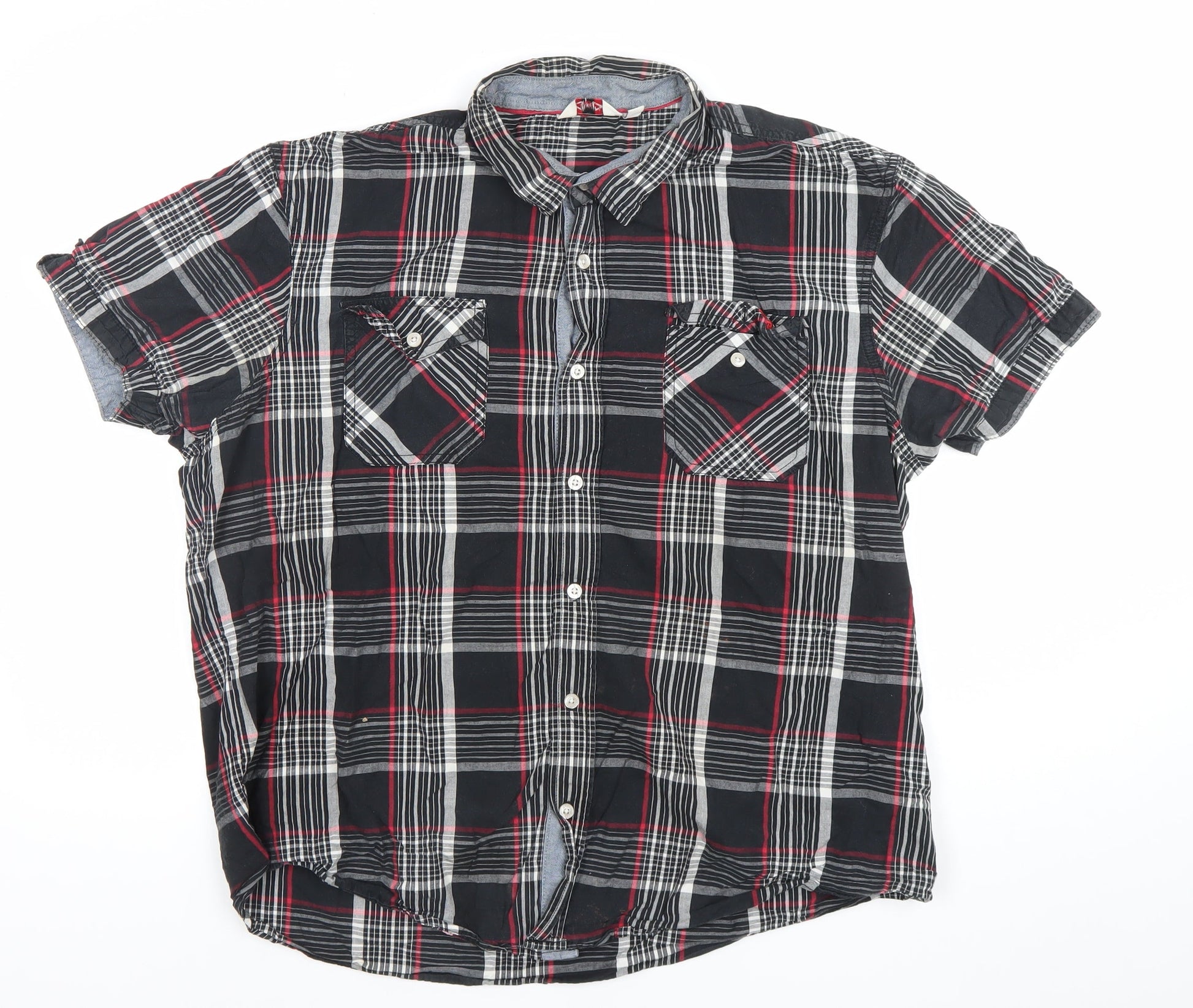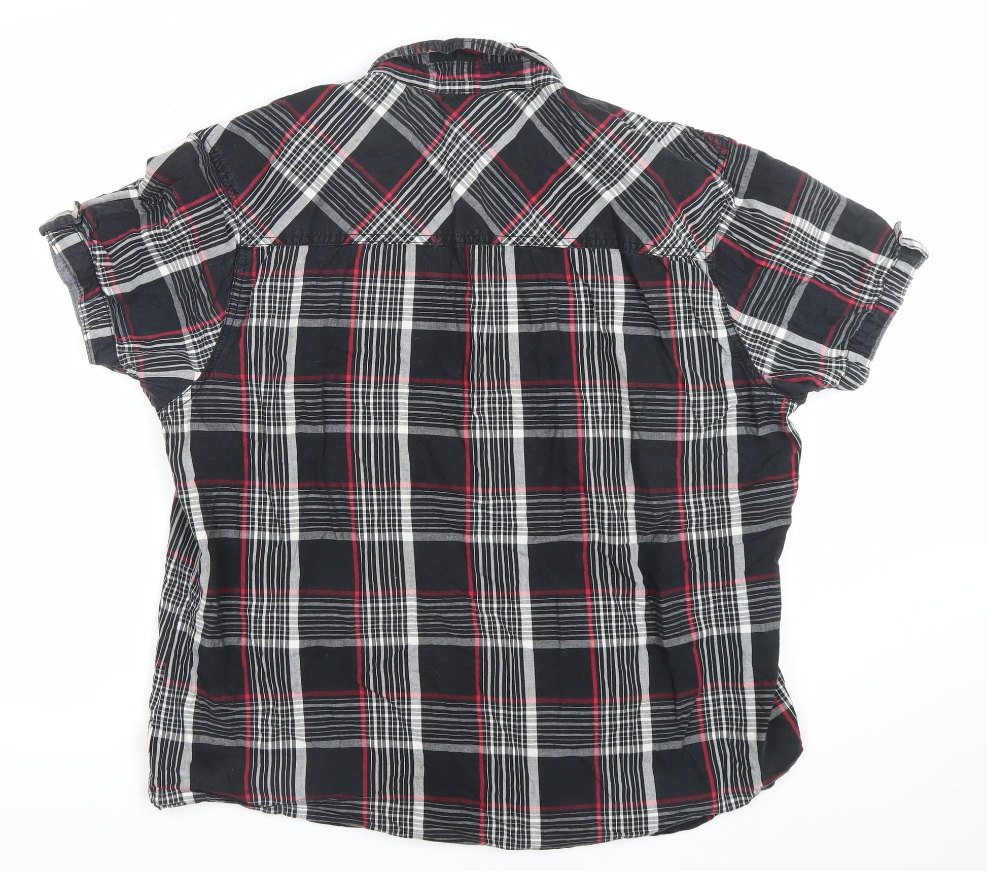 Lee Cooper Men's Black Check Short Sleeve Button-Up Shirt XL