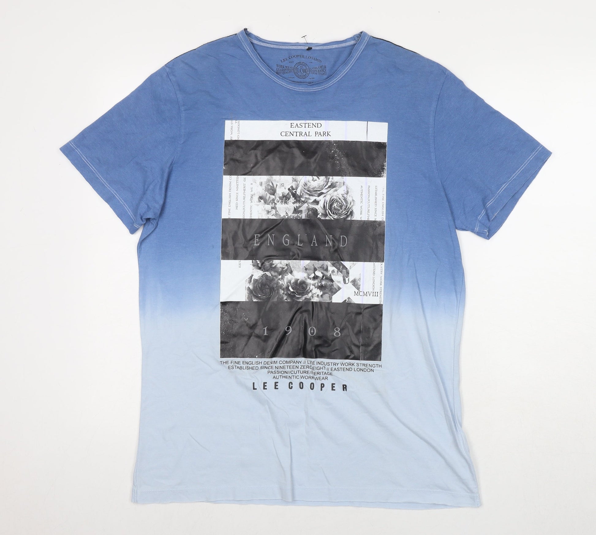 Lee Cooper Mens Blue Cotton T-Shirt Size L Round Neck - England Roses Logo