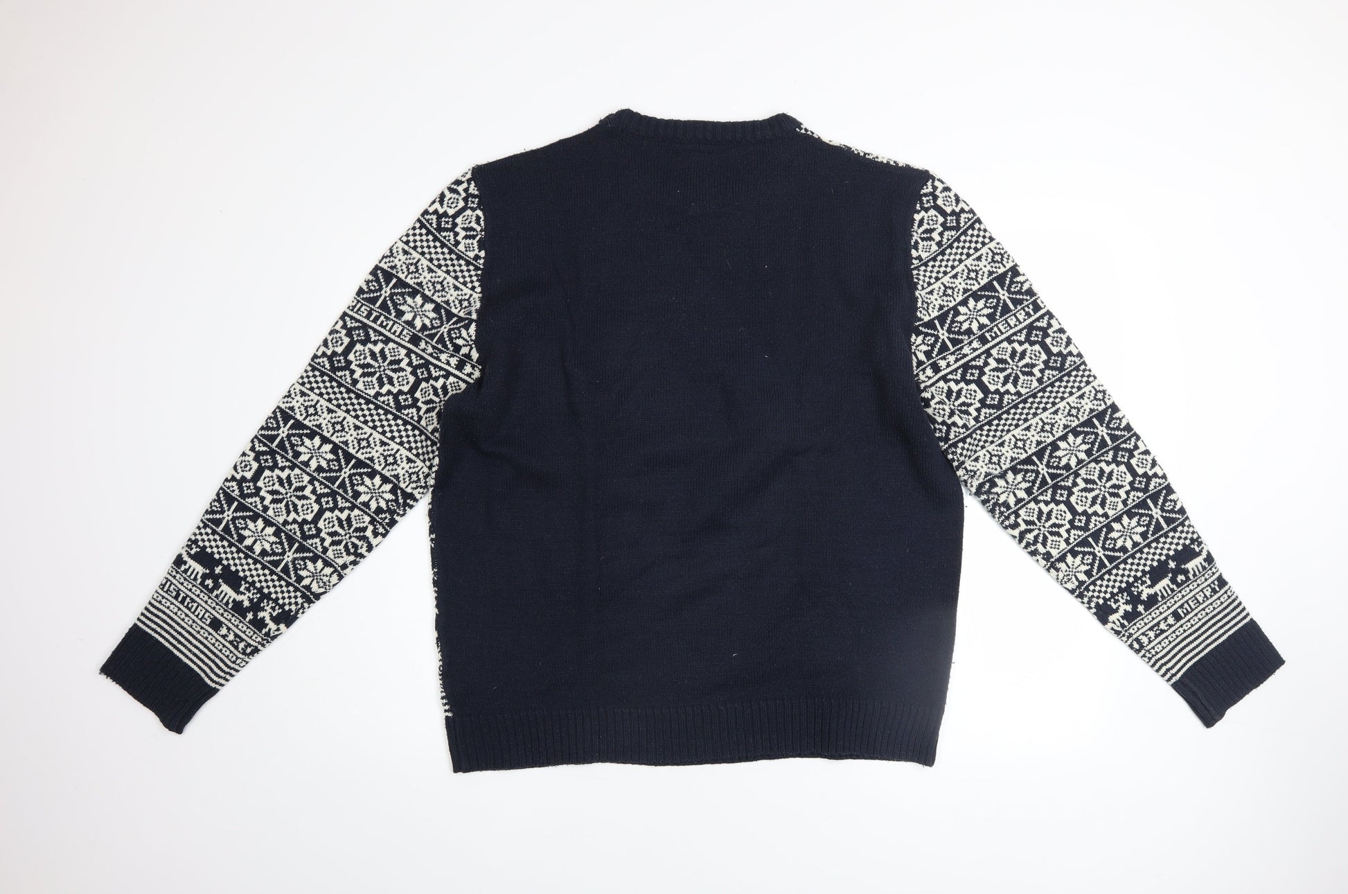 Lee Cooper Mens Blue Fair Isle Christmas Jumper Size L