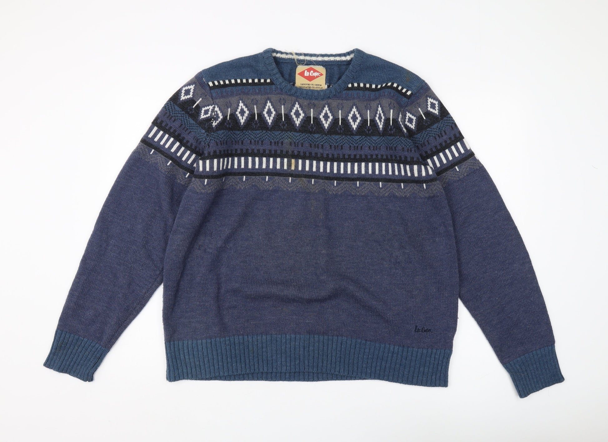Lee Cooper Men's Blue Geometric Knit Pullover - XL