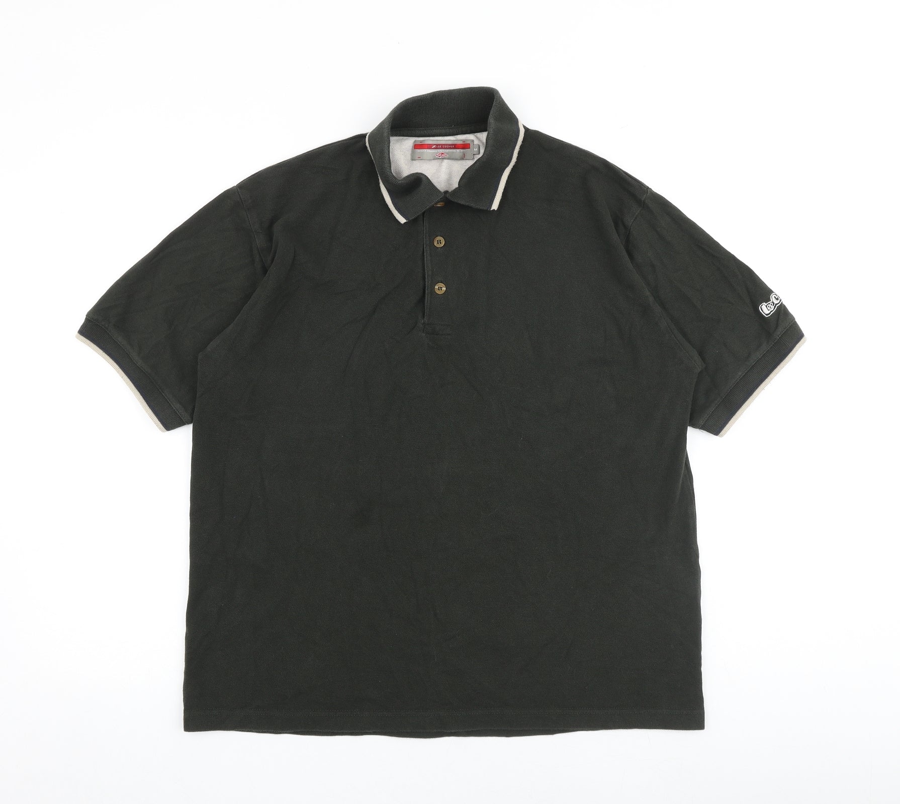 Lee Cooper Mens Green 100% Cotton Polo Size M Collared Button