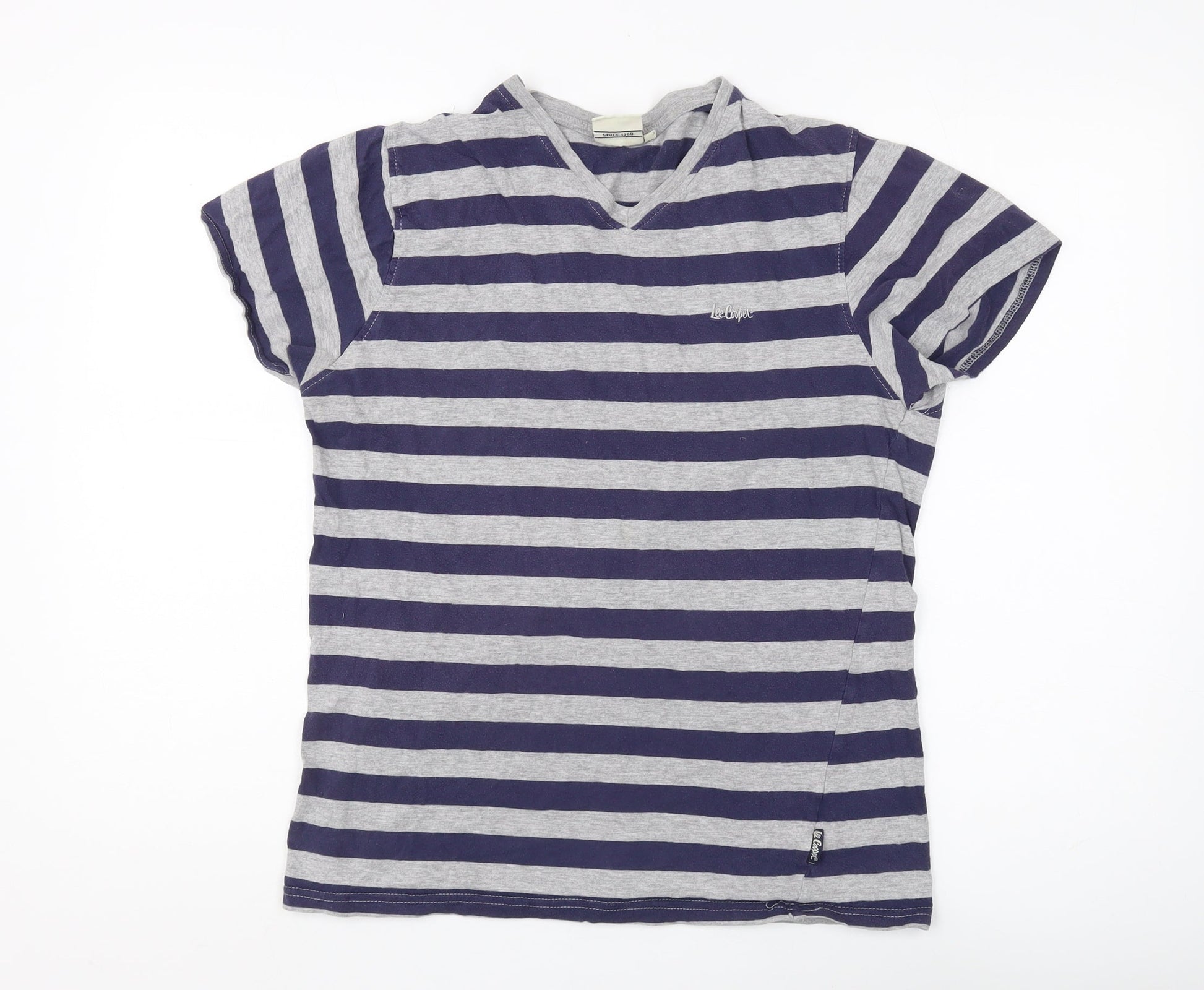 Lee Cooper Men's Grey & Blue Medium Striped T-Shirt