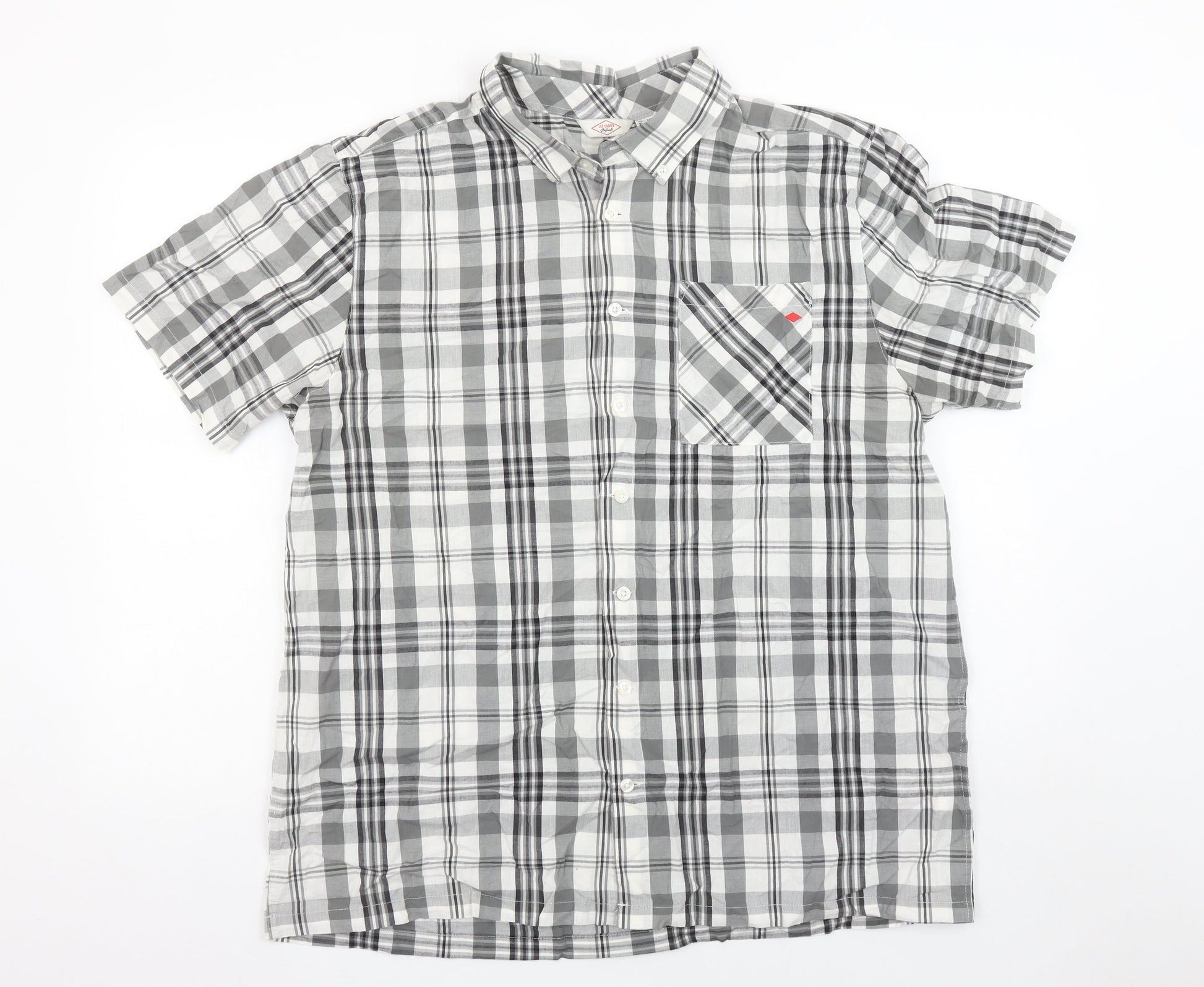 Lee Cooper Men's Grey Checked Short Sleeve Button-Up Shirt XL