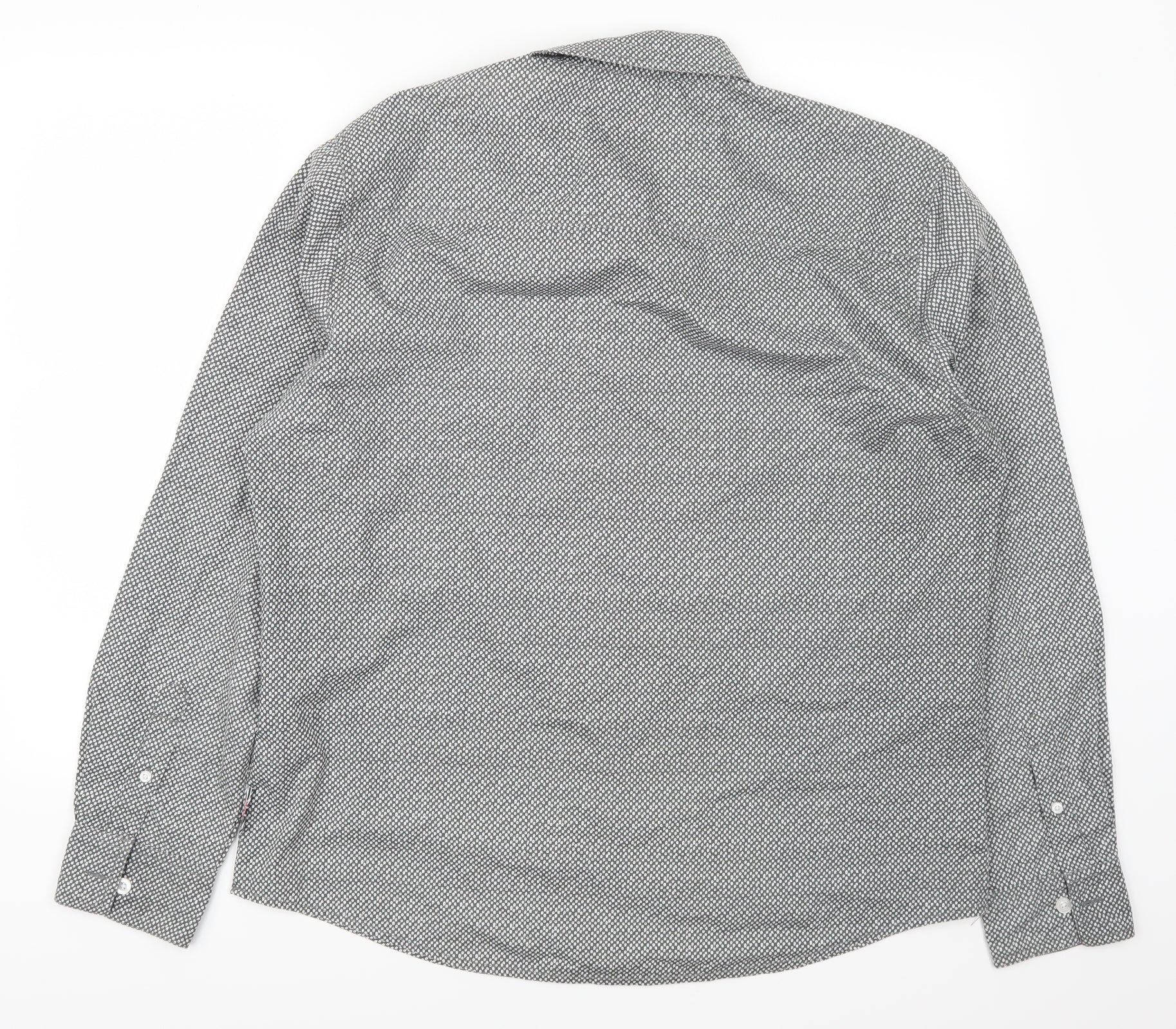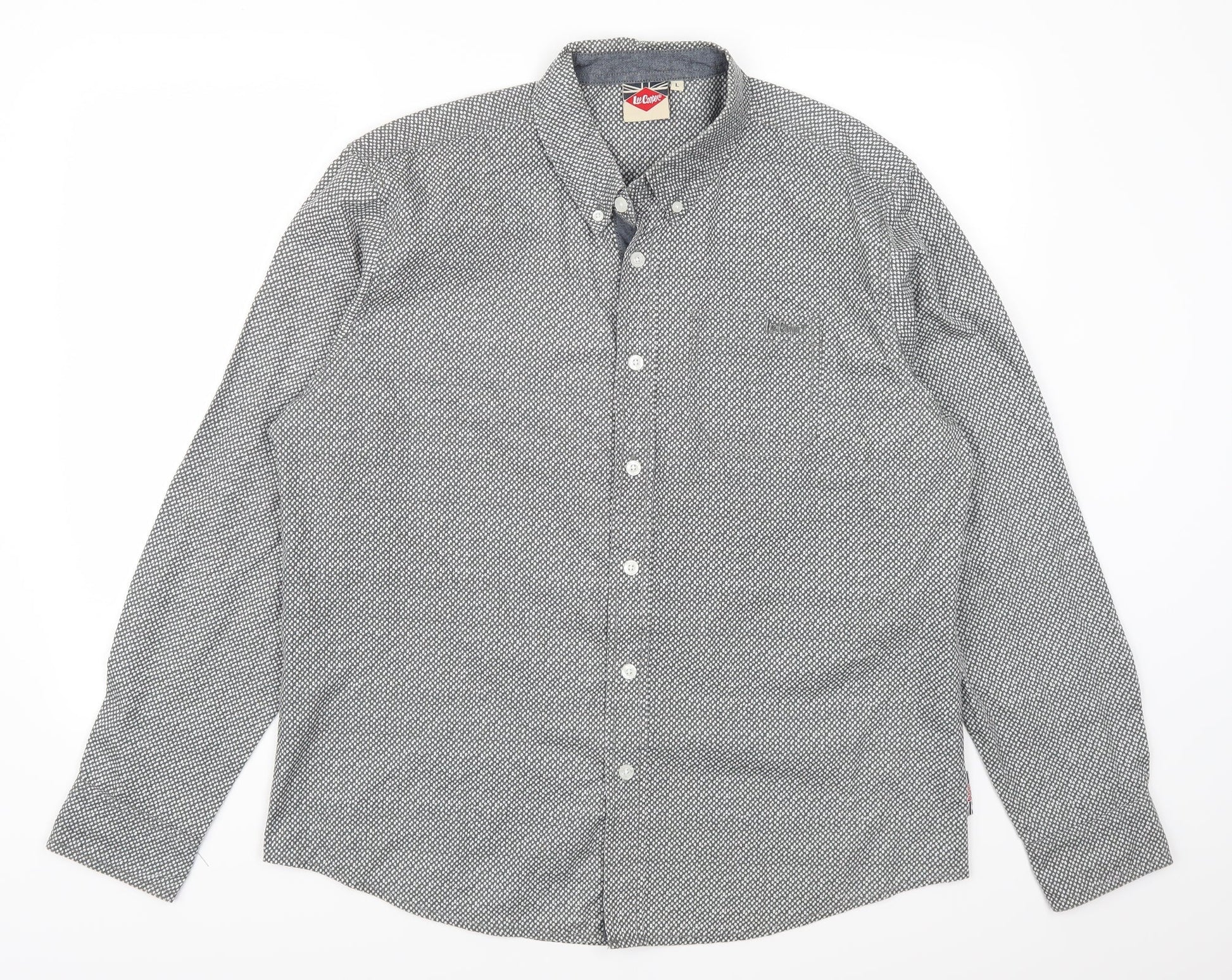 Lee Cooper Mens Grey Geometric Button-Up Size L