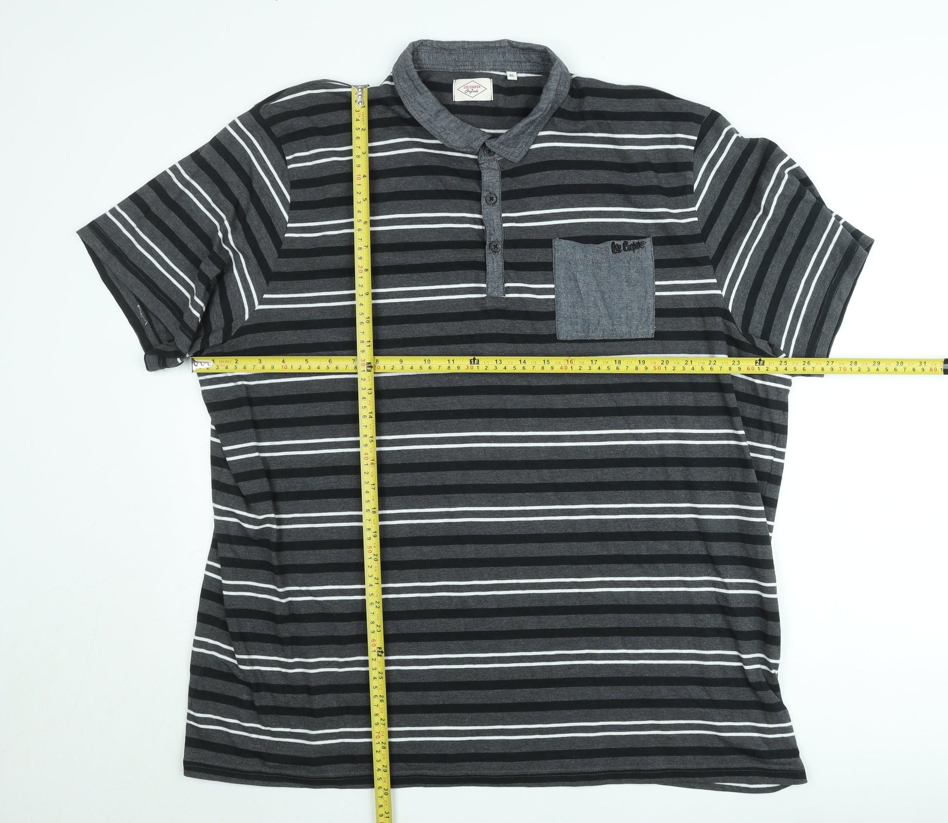 Lee Cooper Men's Grey Striped 4XL Short Sleeve Collared Polo Shirt