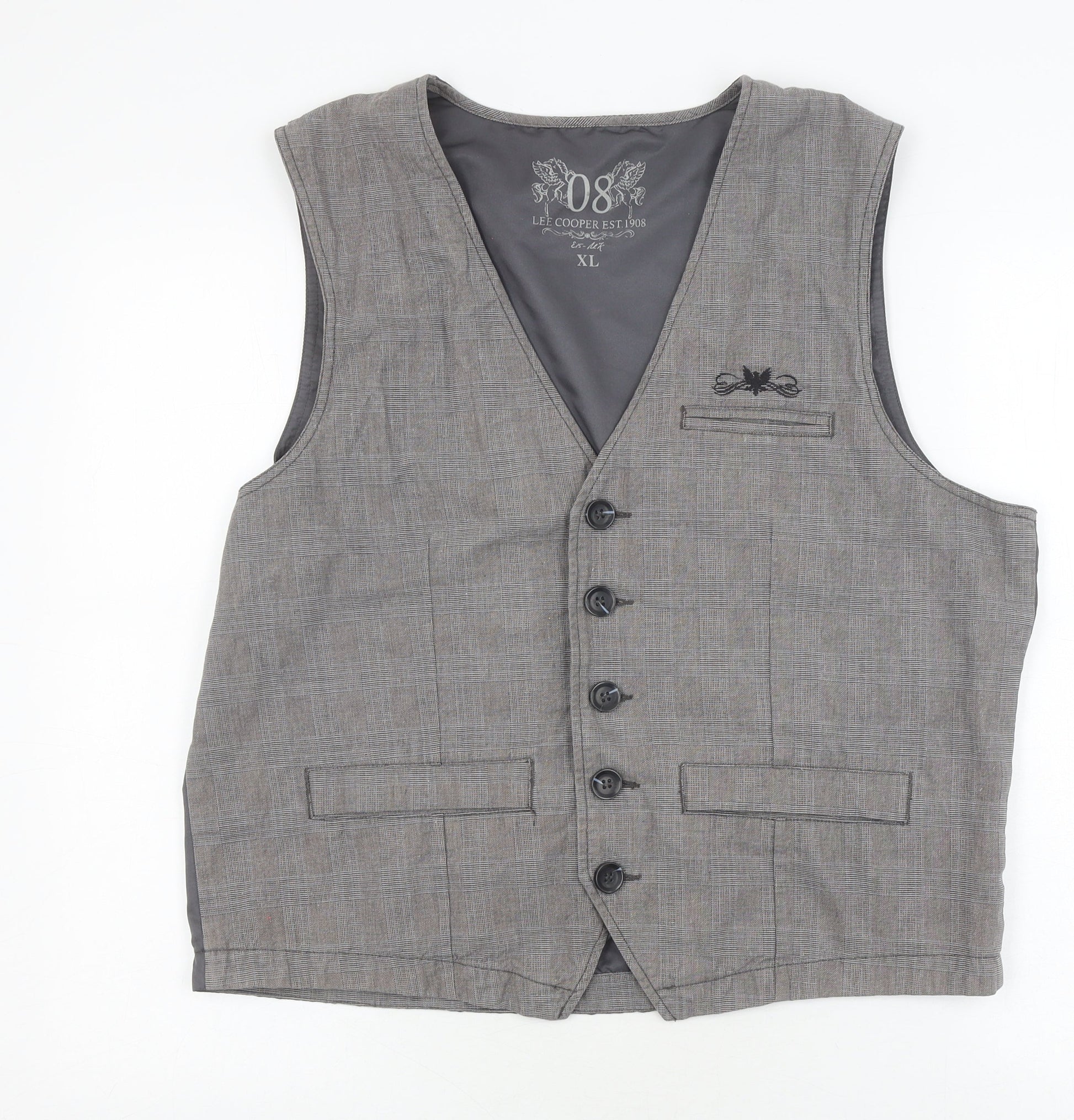 Lee Cooper Men's Grey Waistcoat XL, Cotton and Polyester