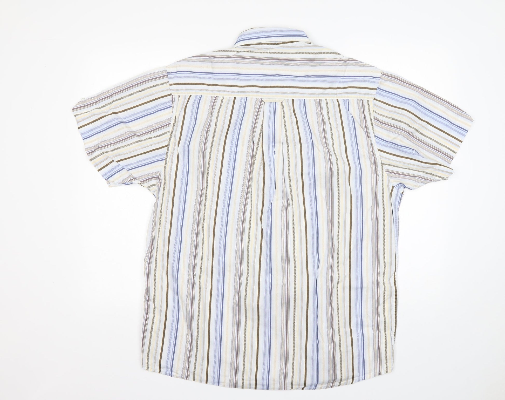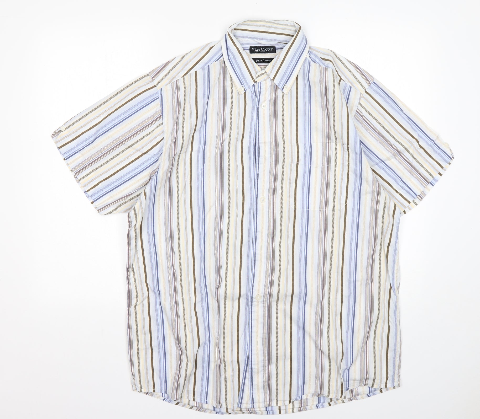Lee Cooper Mens Multicoloured Striped Cotton Button-Up Size M Collared