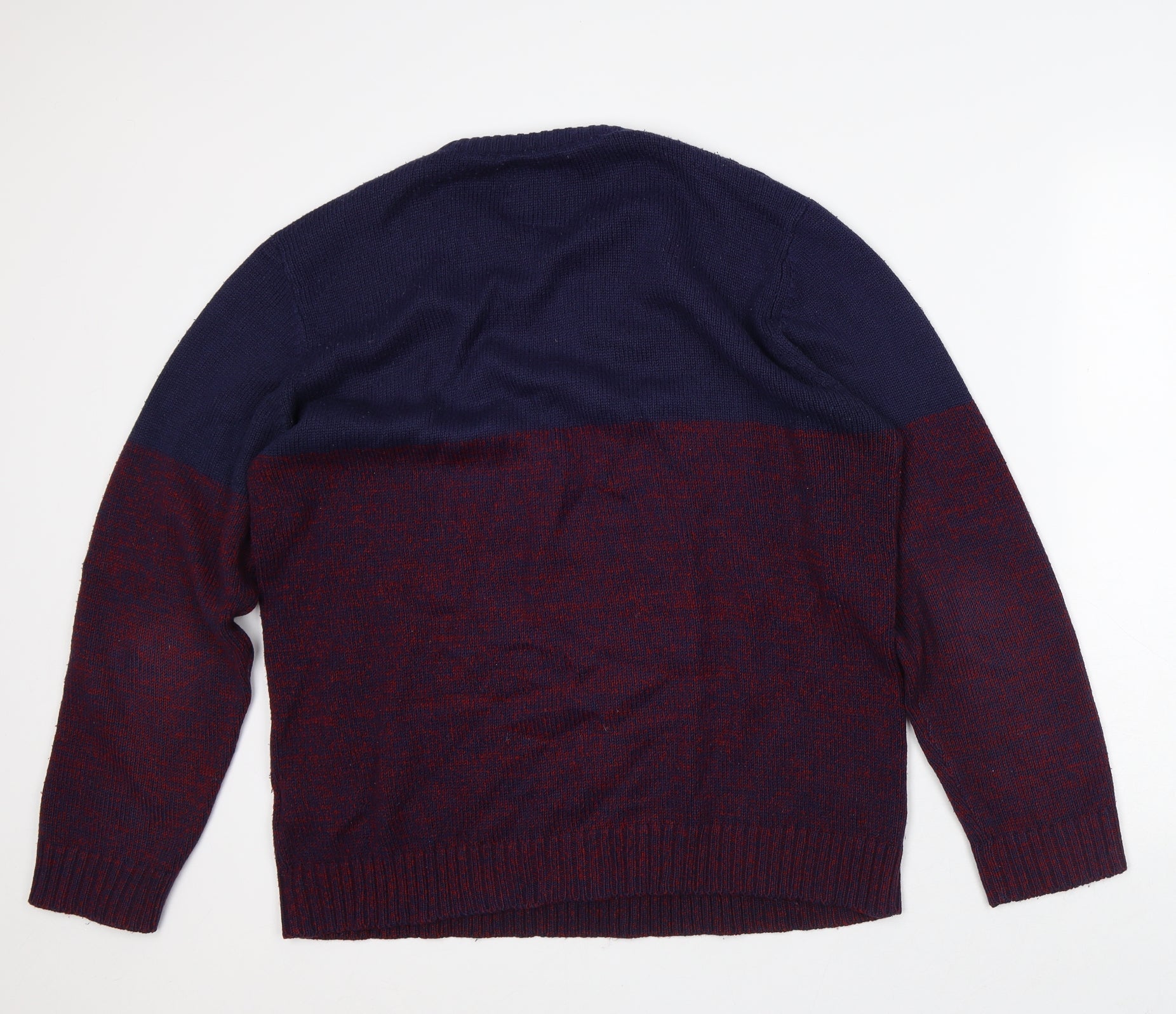 Lee Cooper Mens Red Crew Neck Striped Acrylic Pullover Jumper Size L