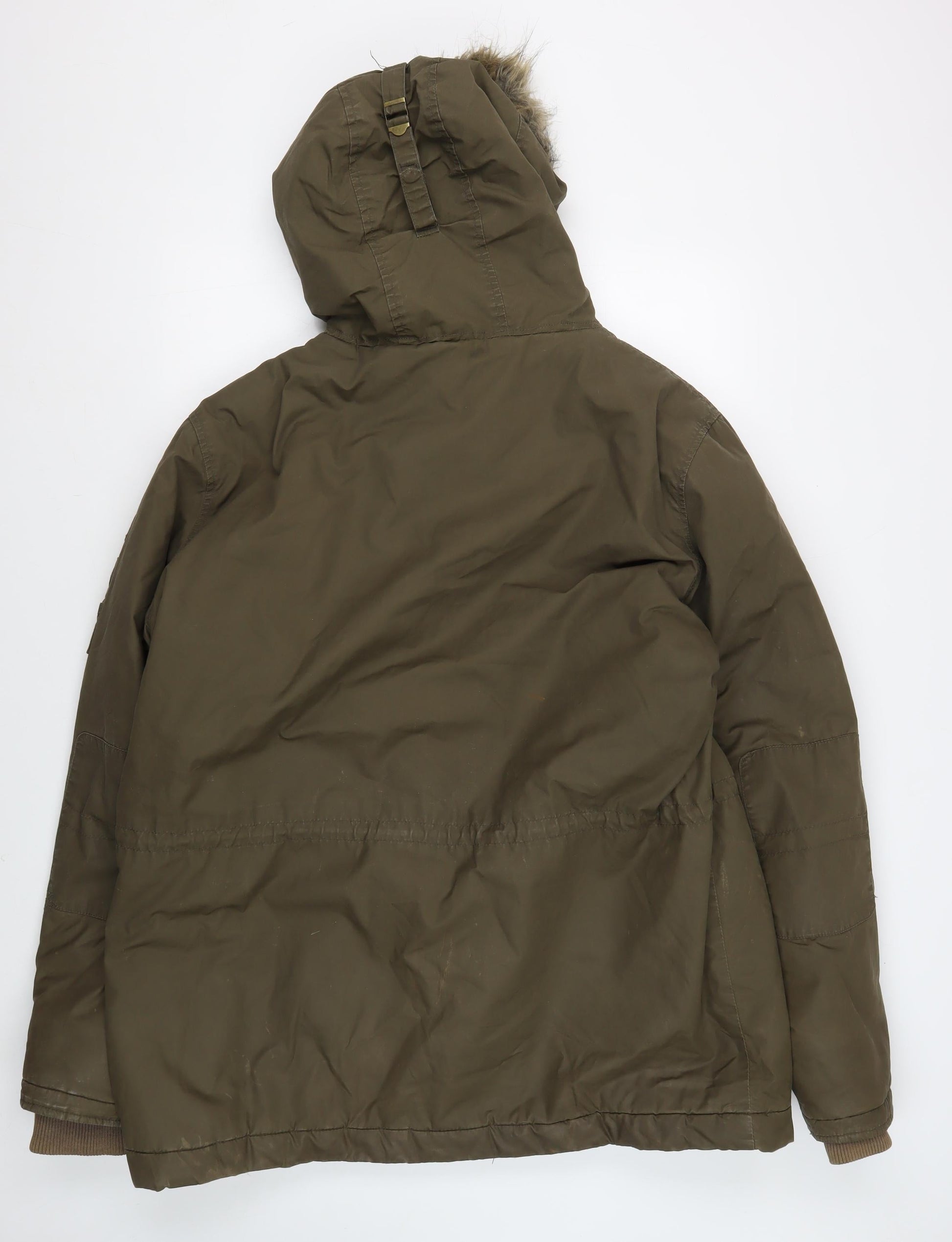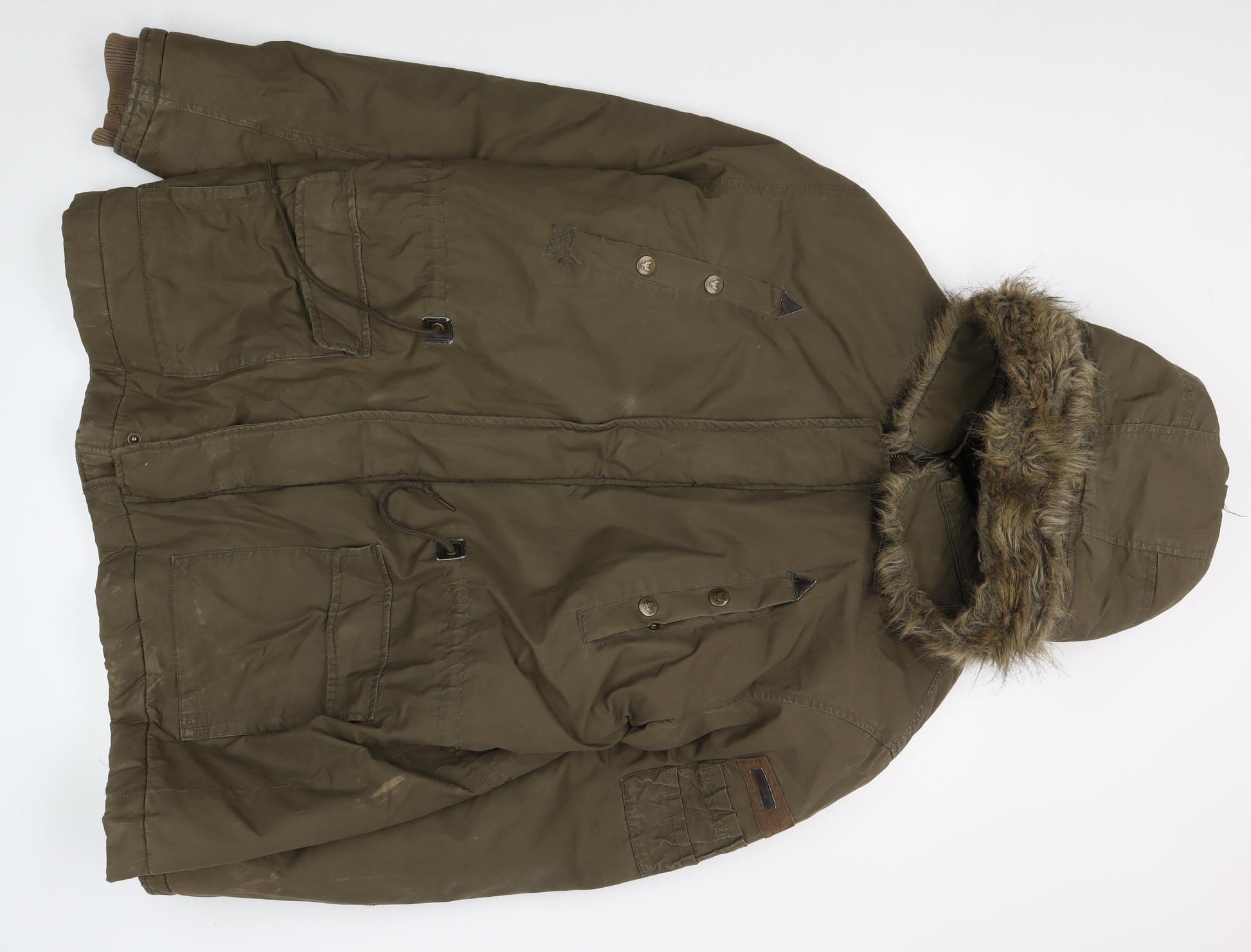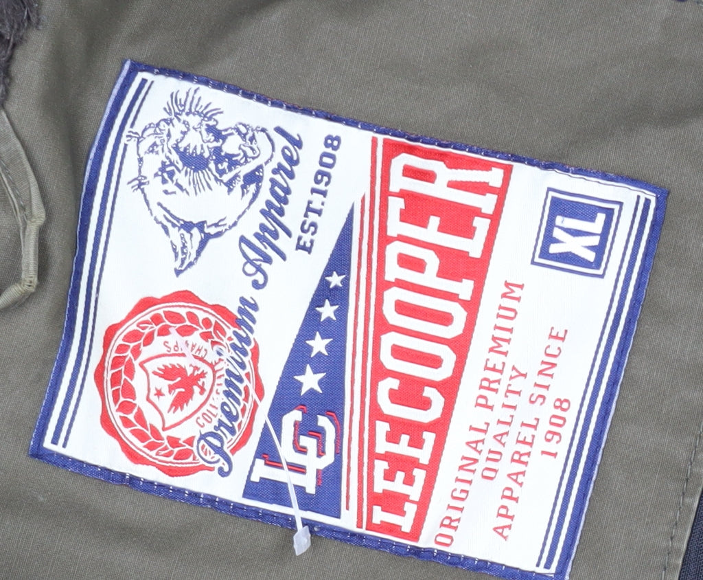 Lee Cooper Men's XL Green Parka Jacket with Fur Hood