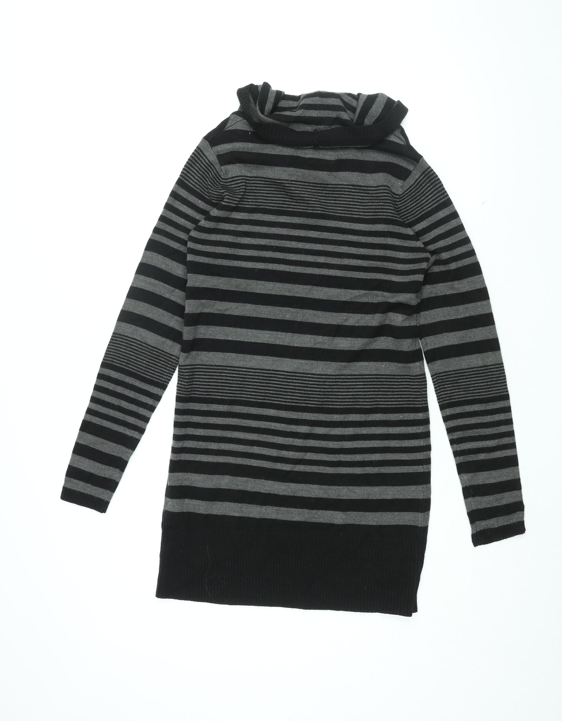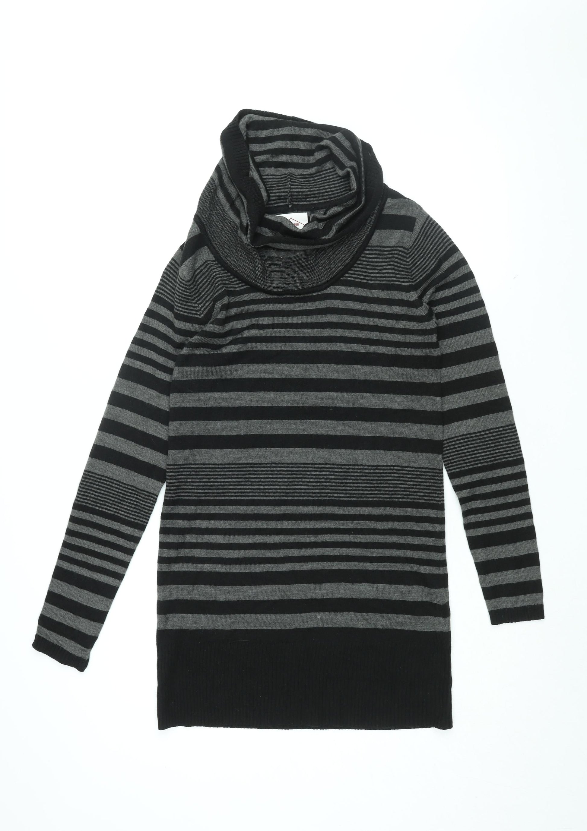 Lee Cooper Womens Black Striped Acrylic Shift Size 10 Roll Neck Pullover