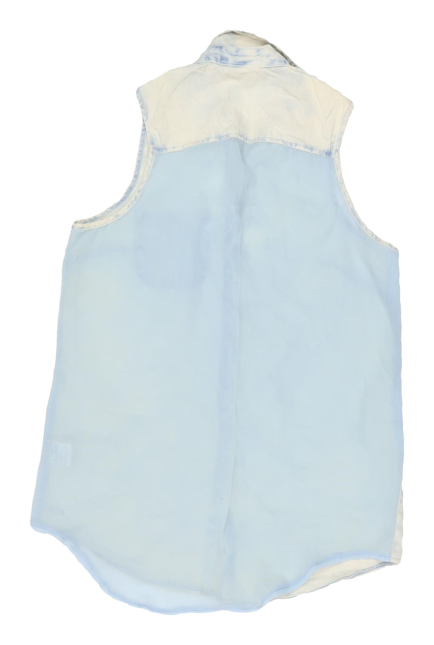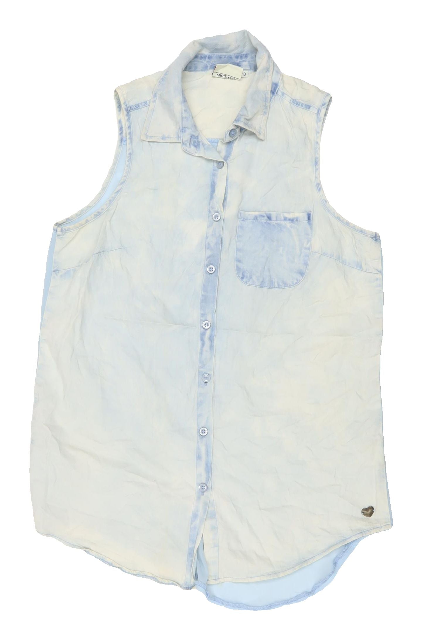 Lee Cooper Women's Blue Cotton Button-Up Sleeveless Shirt