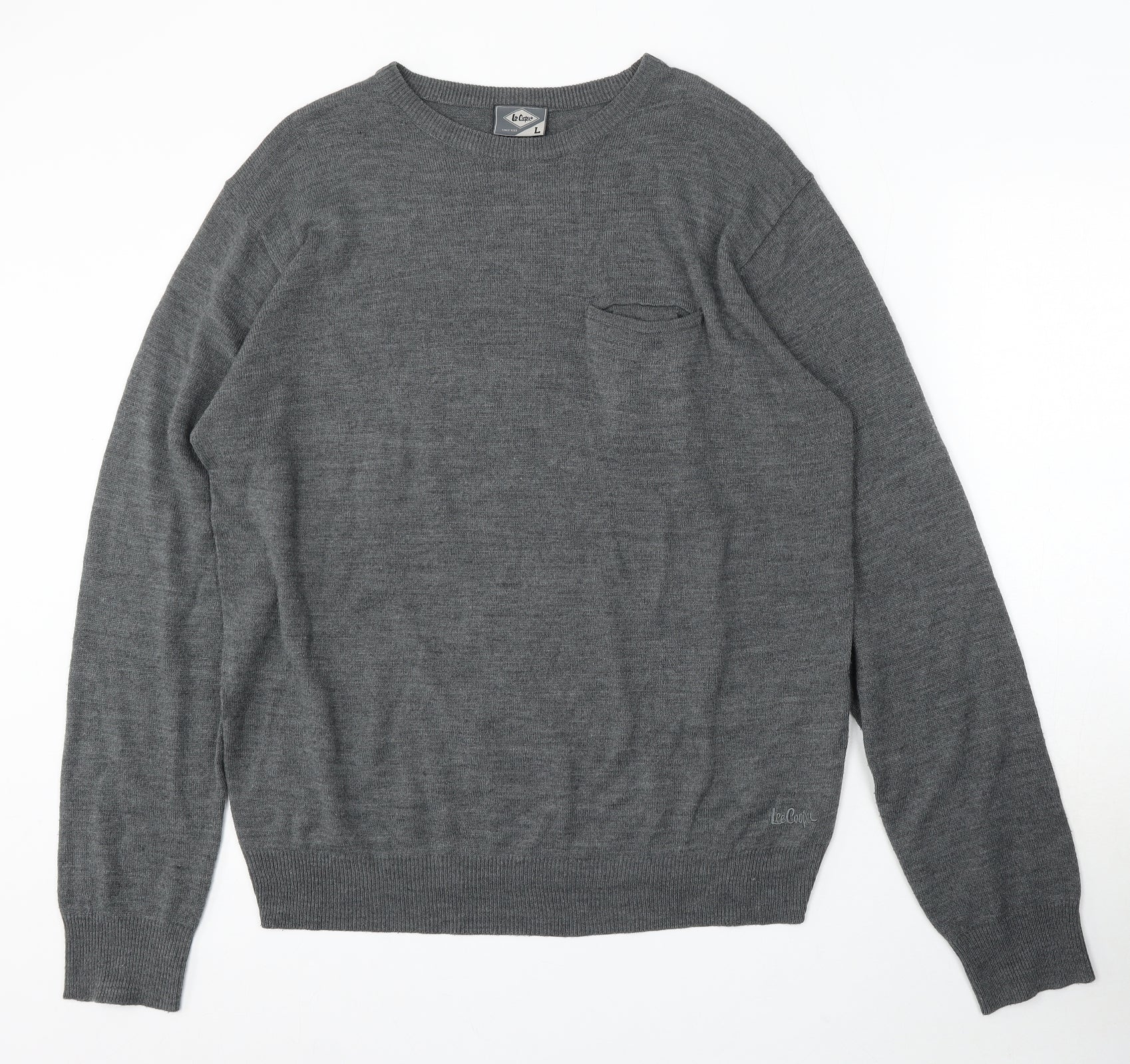 Lee Cooper Womens Grey Round Neck Acrylic Pullover Jumper Size L