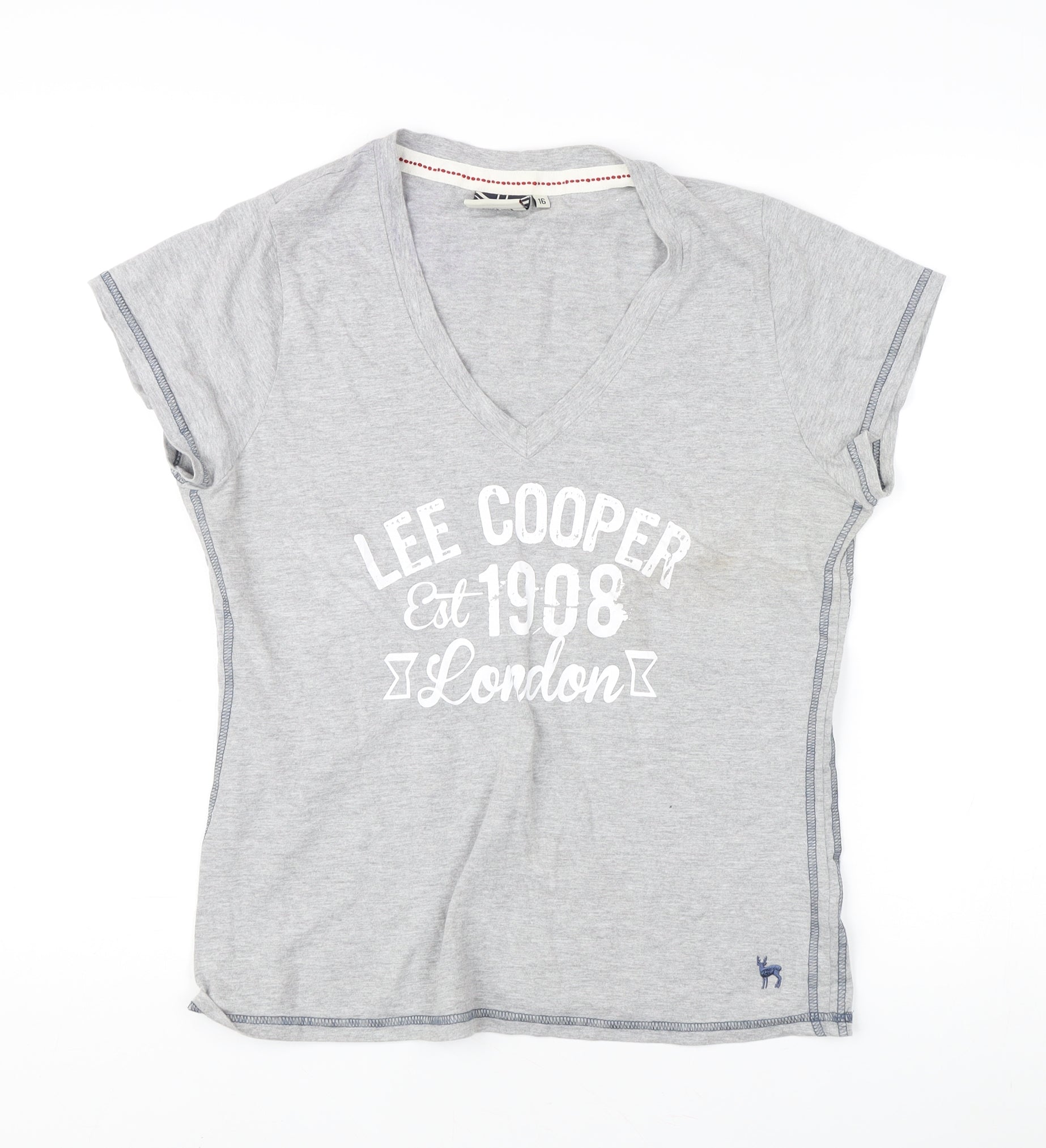 Lee Cooper Women's Grey V-Neck T-Shirt Size 16