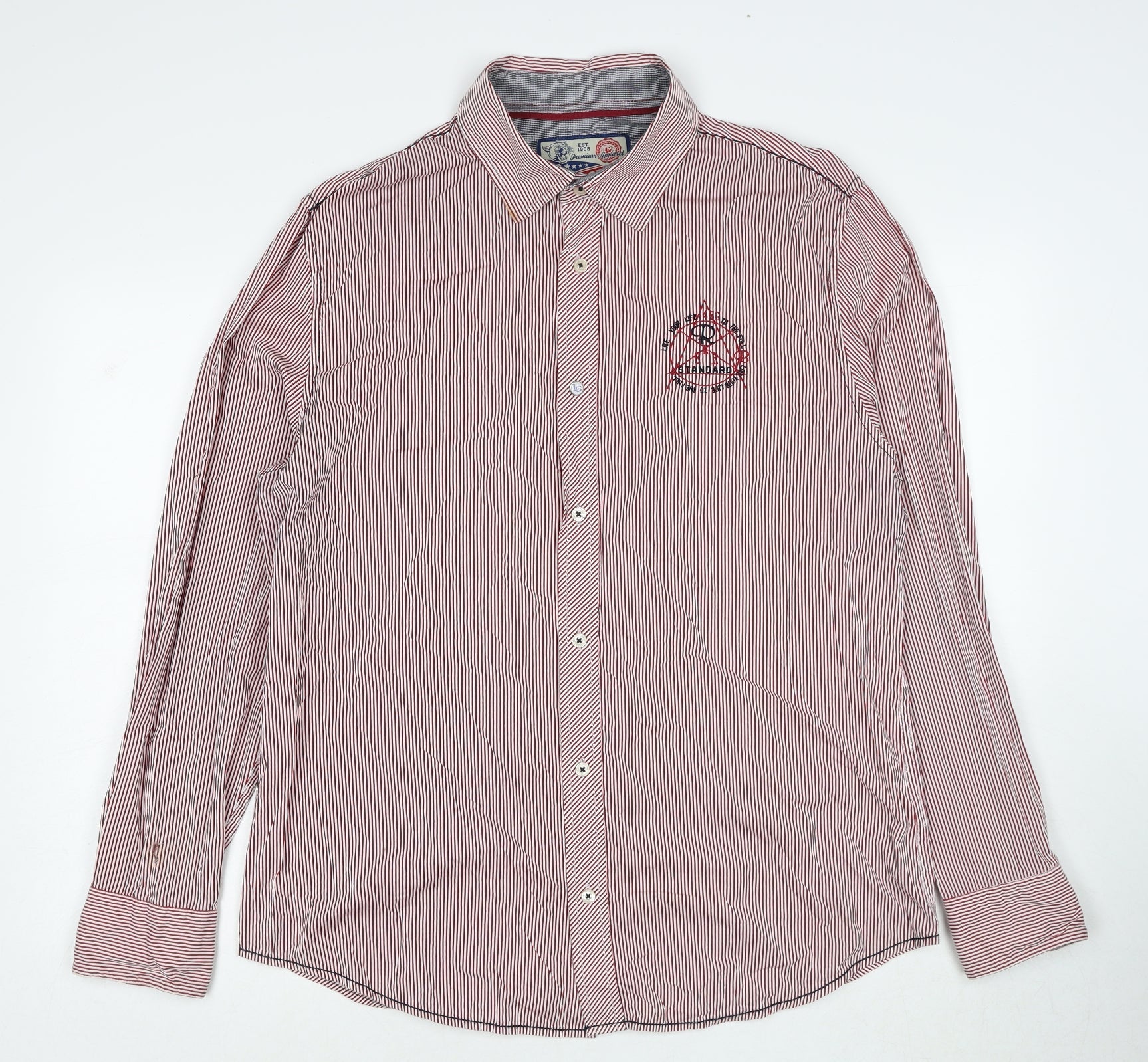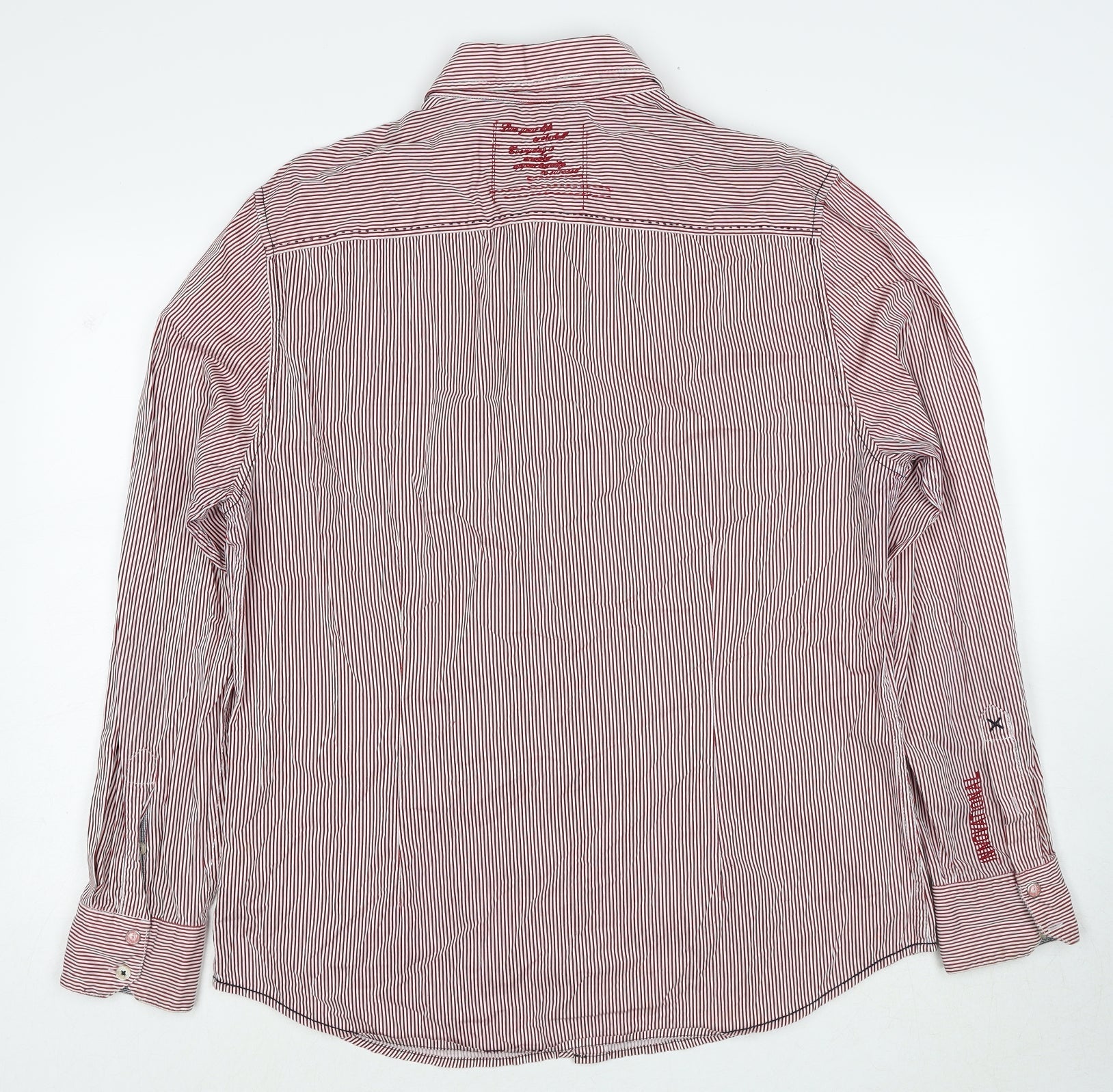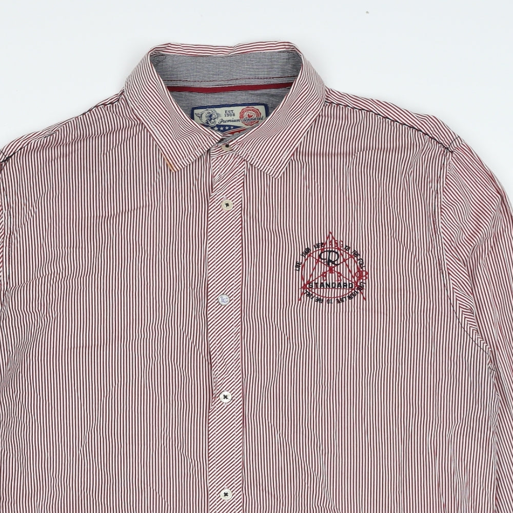 Lee Cooper Womens Red Striped Cotton Basic Button-Up Size L Collared