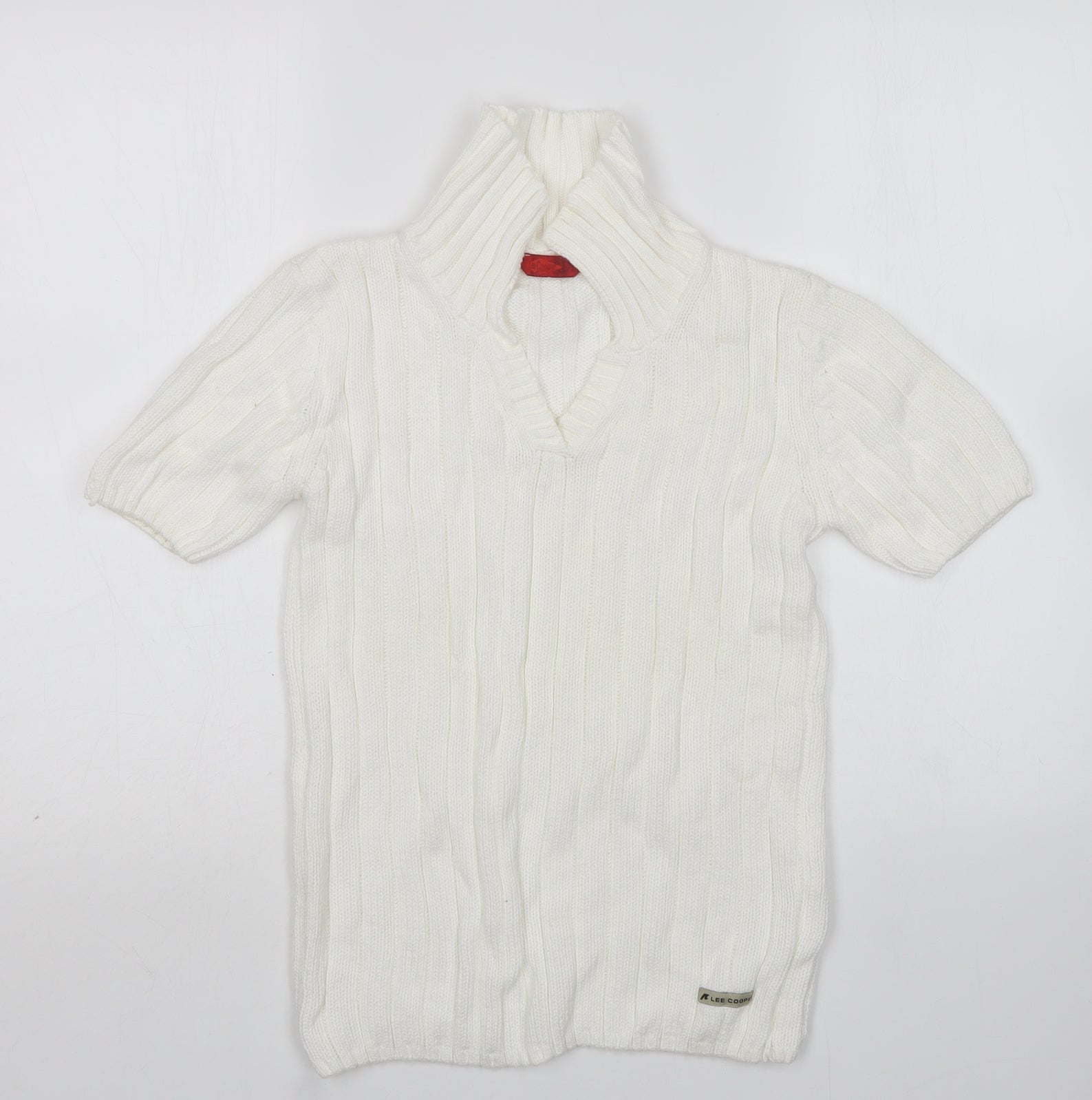 Lee Cooper Womens White V-Neck Cotton Pullover Jumper Size S