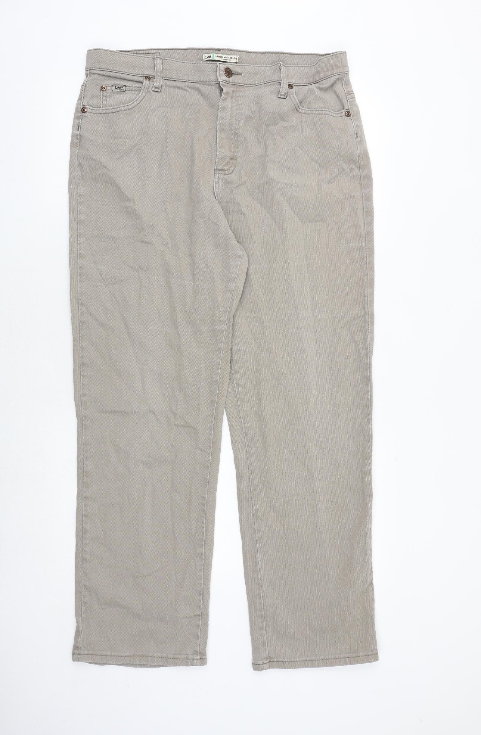 Lee Mens Beige Cotton Straight Jeans Size 35 in Relaxed Zip