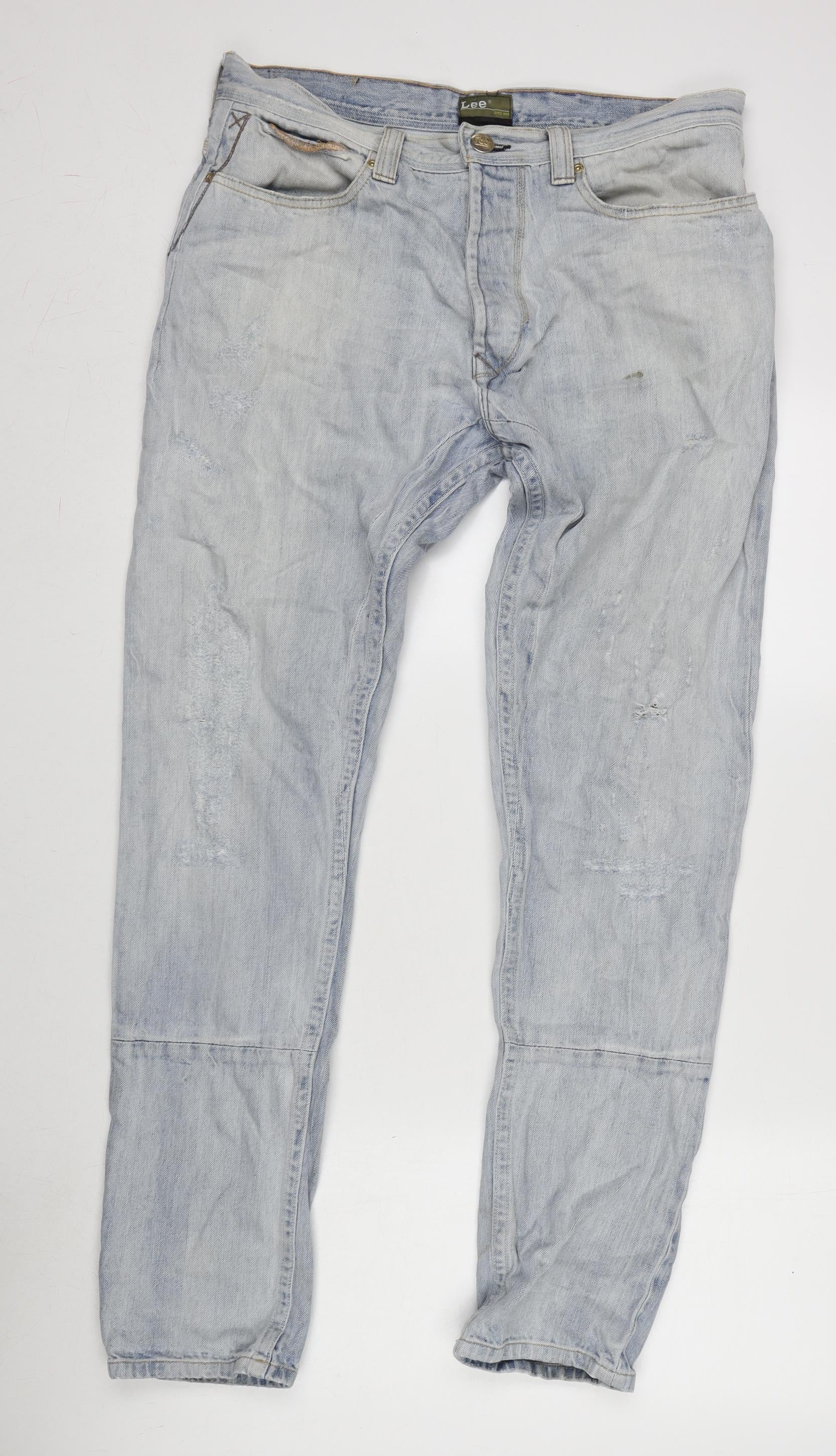 Lee Mens Blue Cotton Straight Jeans Size 34 in L31 in Regular Zip