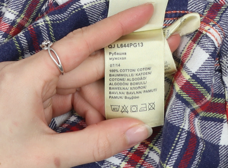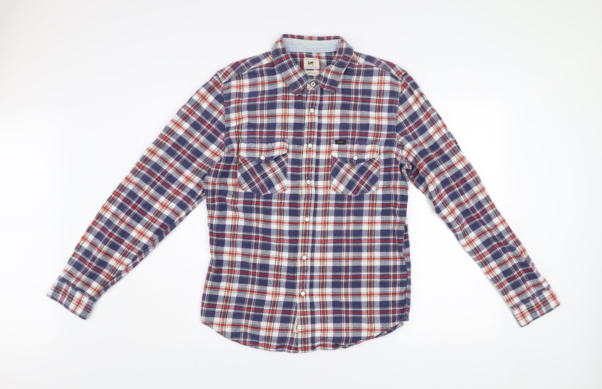 Lee Men's Blue Red Checked Flannel Button-Up Western Shirt M