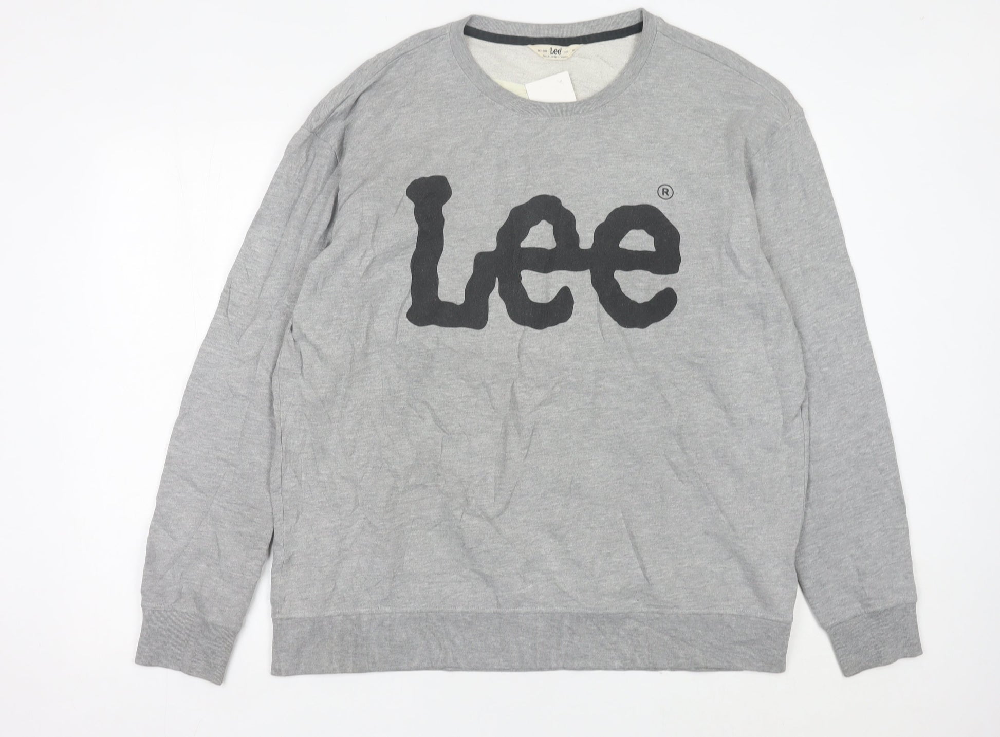 Lee Mens Grey 2XL Pullover Sweatshirt Crew Neck Logo Print