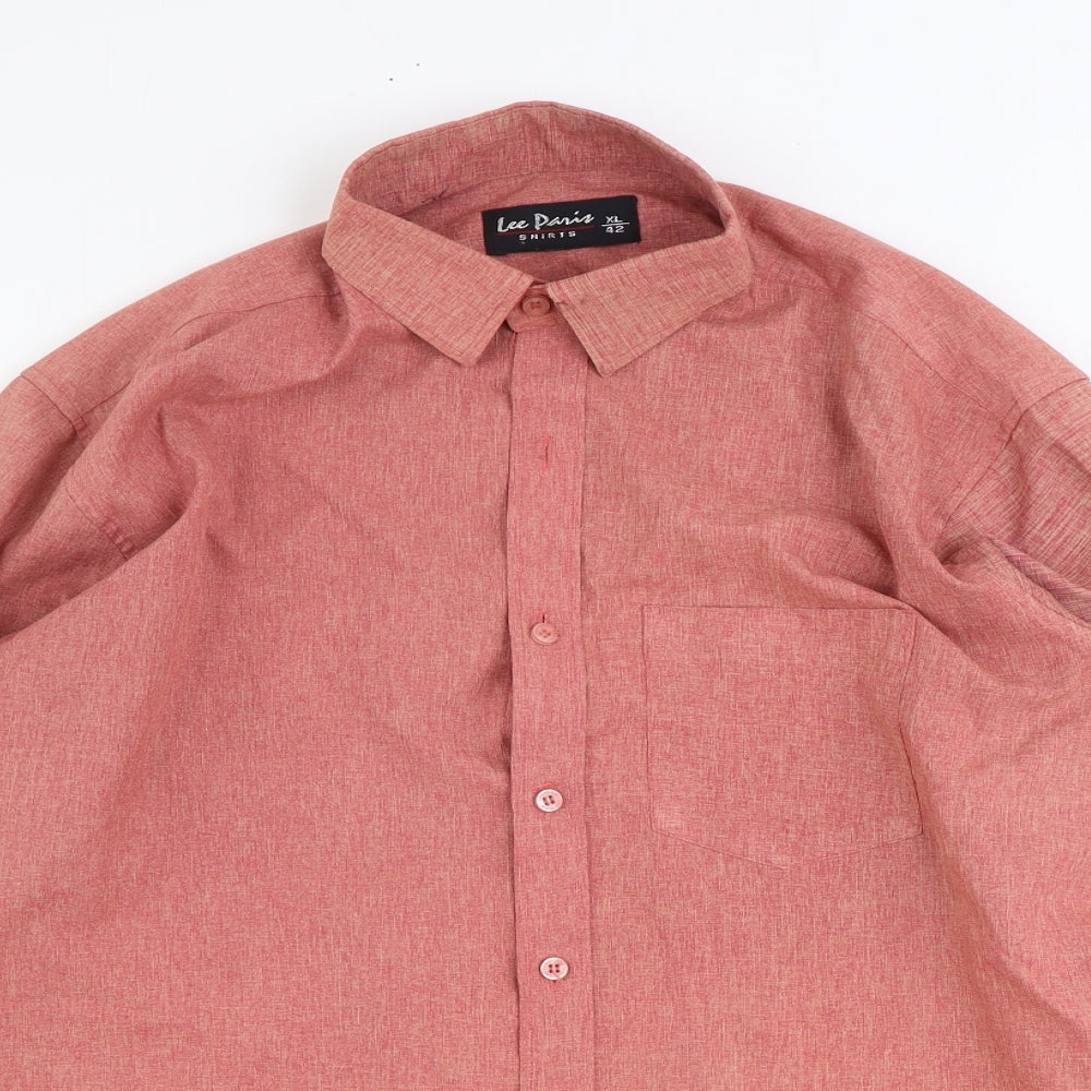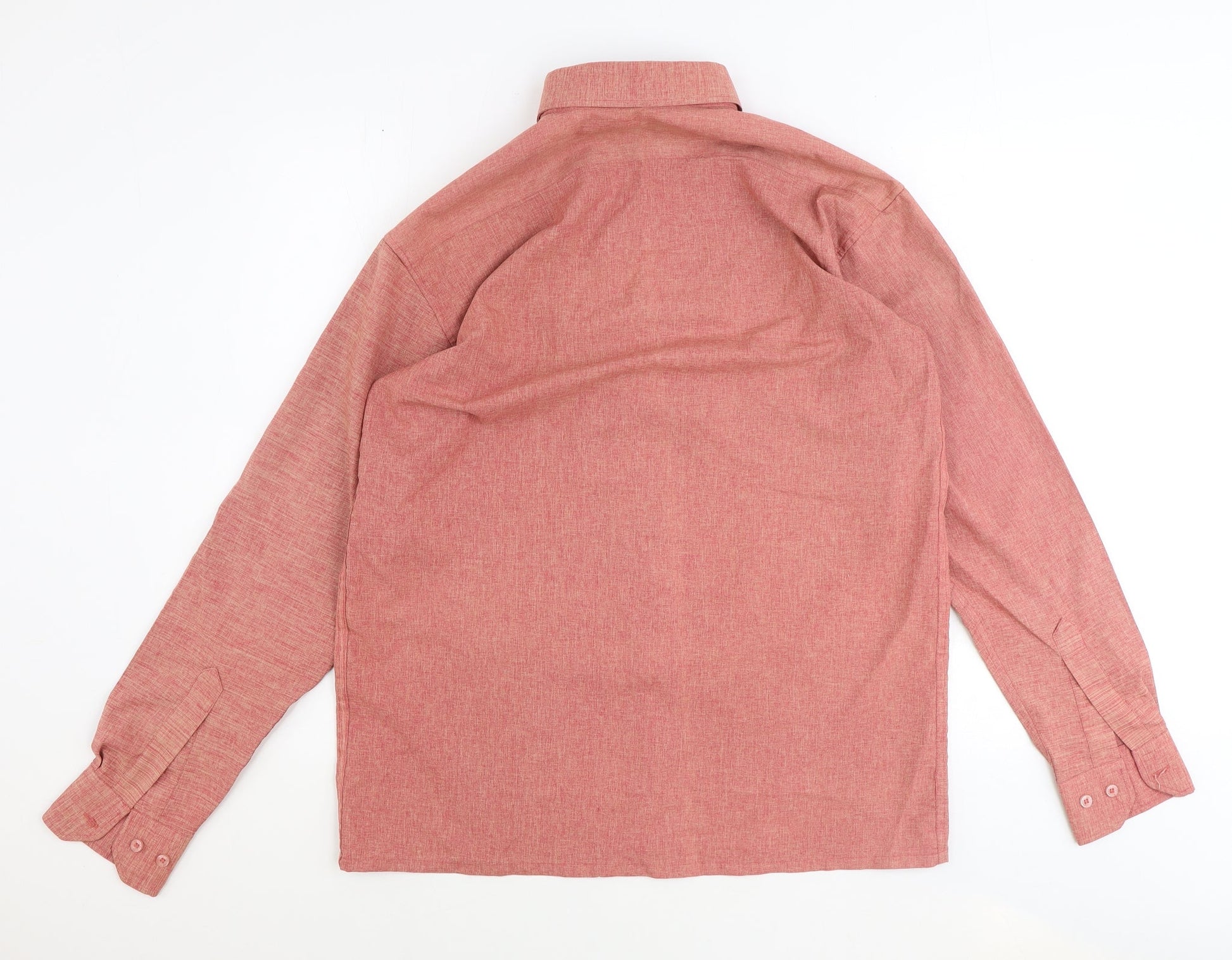 Lee Paris Mens Red Polyester Dress Shirt Size XL Collared Button