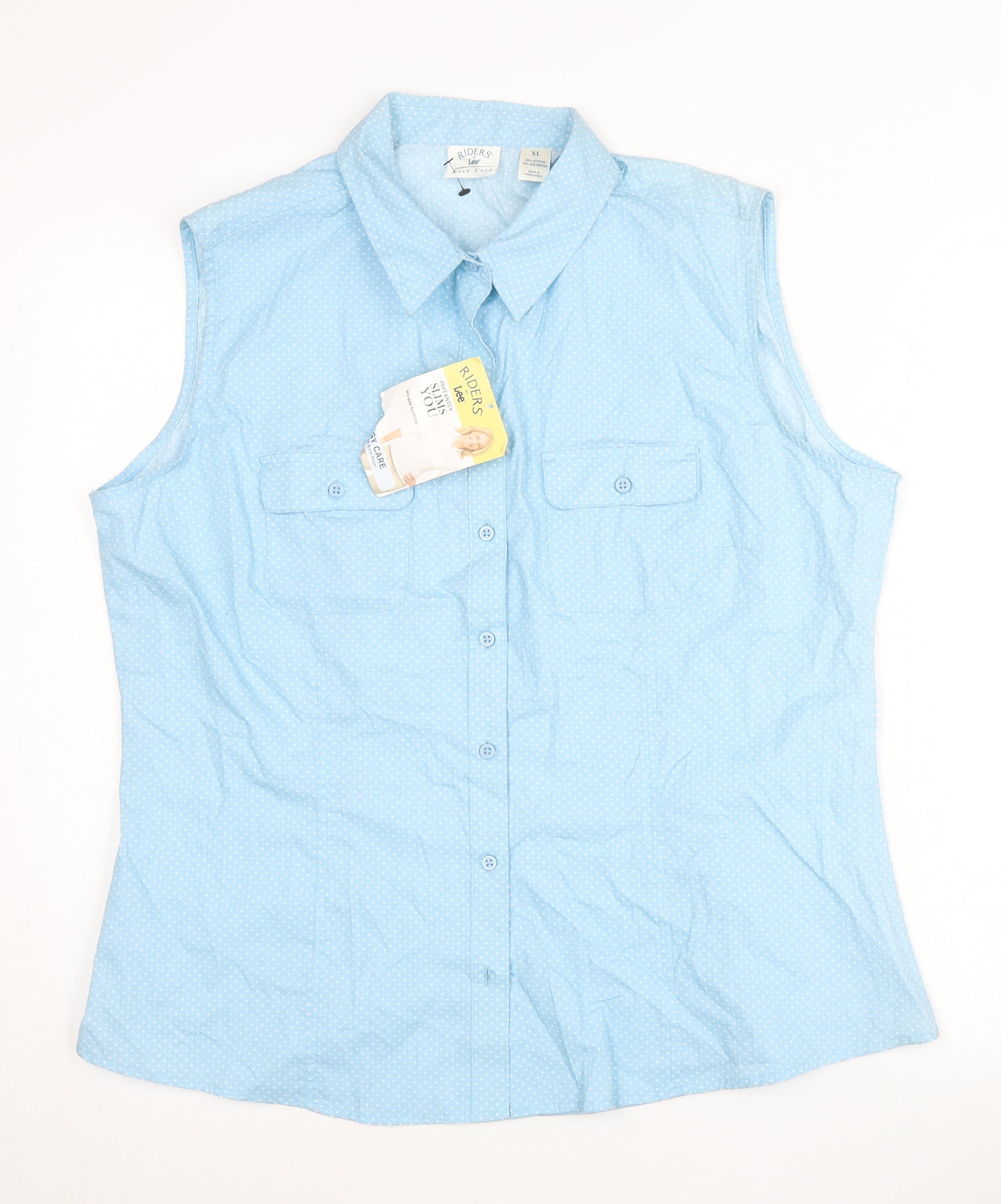 Lee Riders Women’s Blue Polka Dot Sleeveless Button-Up Shirt XL