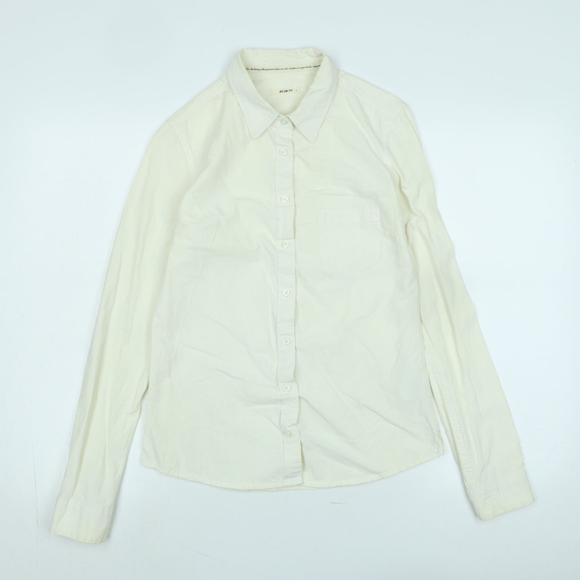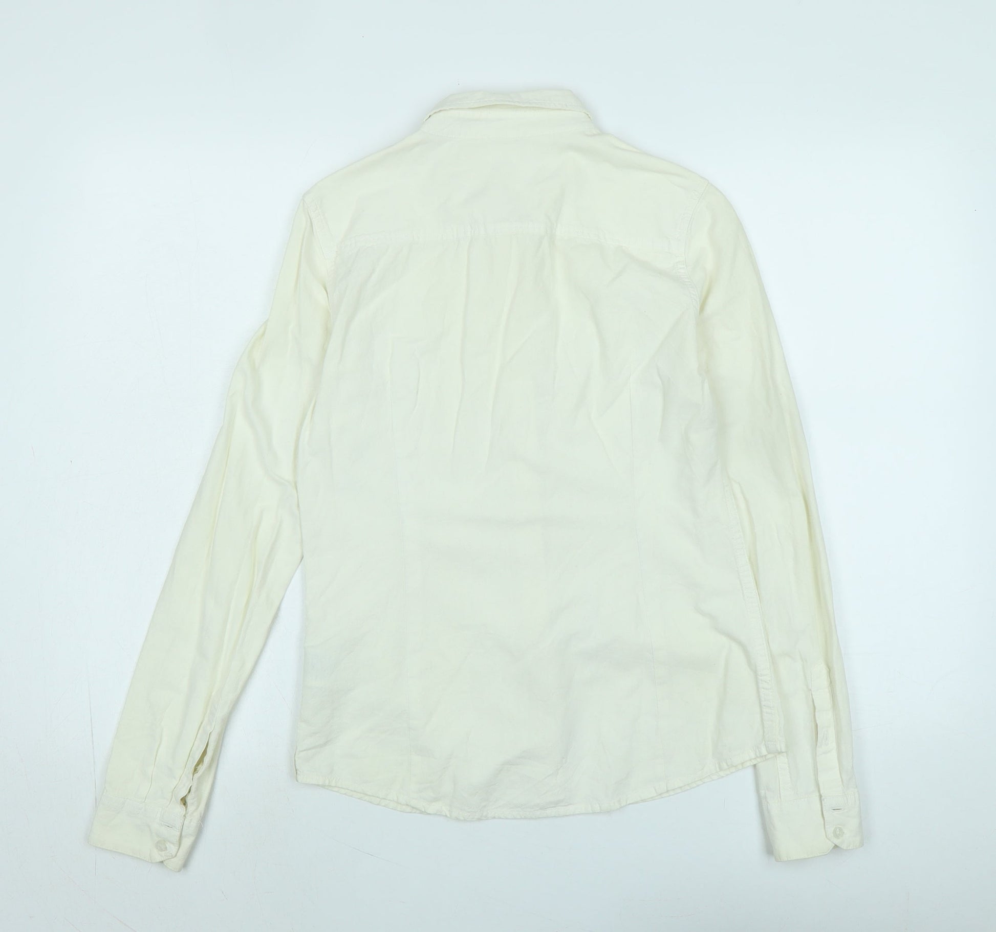 Lee Womens Ivory Cotton Basic Blouse Size S Collared - Logo