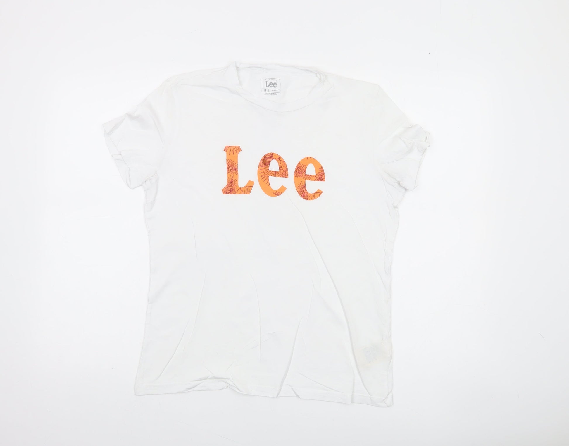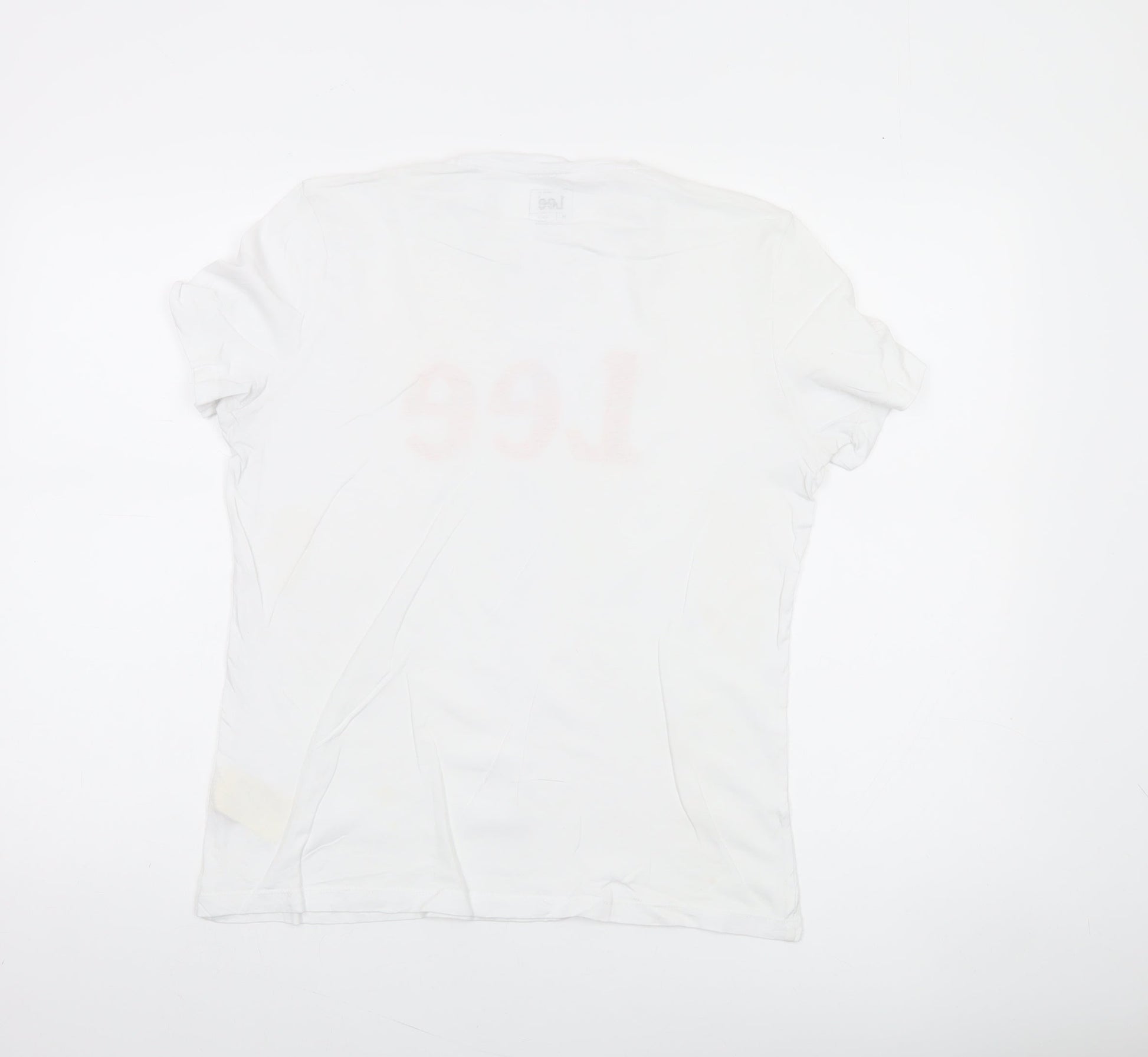 Lee Women's White Slim Fit Crew Neck Cotton T-Shirt M