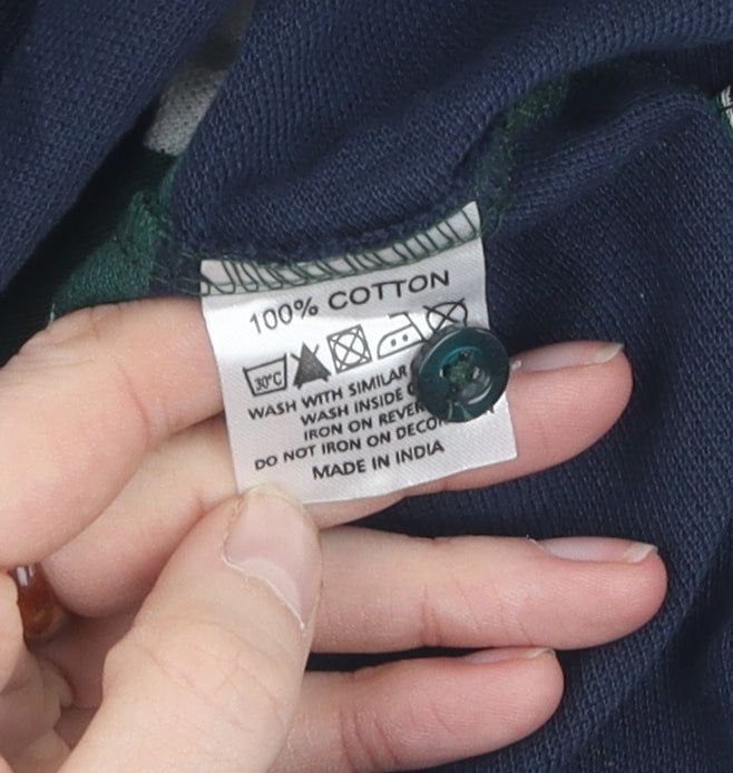 Leicester Tigers Men's Green Striped Polo Shirt M