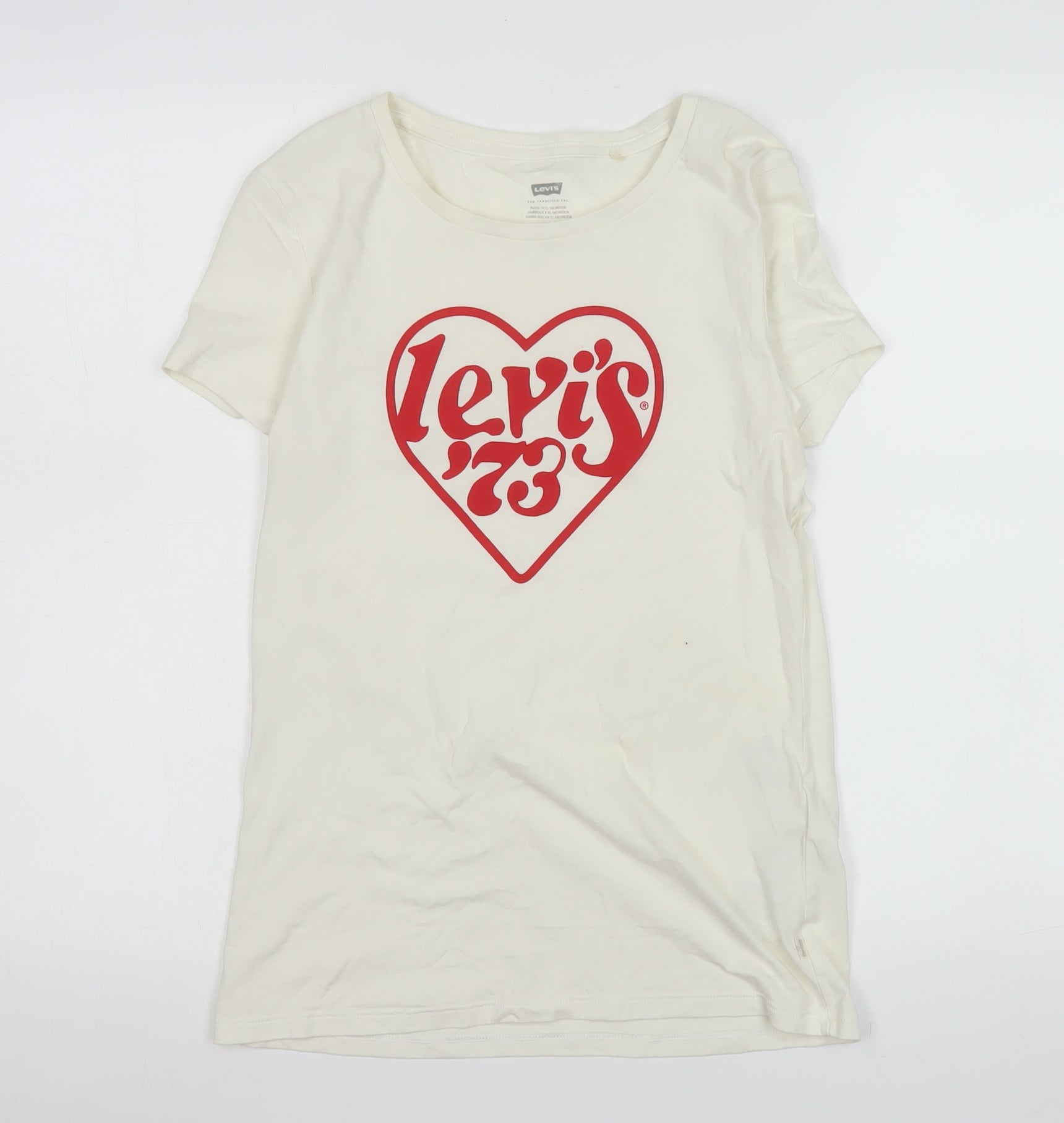 Levi’s Women Ivory 70s Retro Heart Logo Cotton T-Shirt Size S