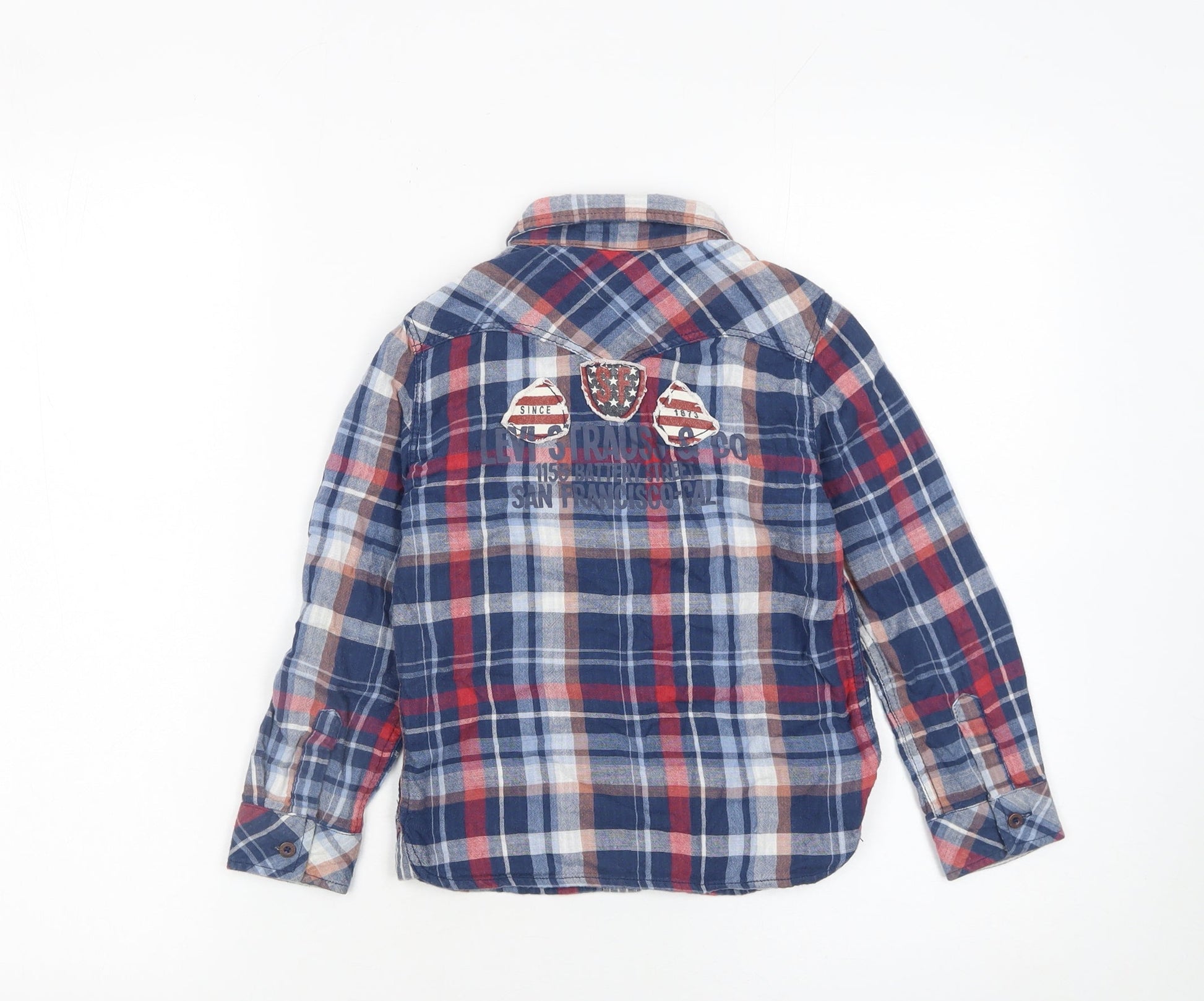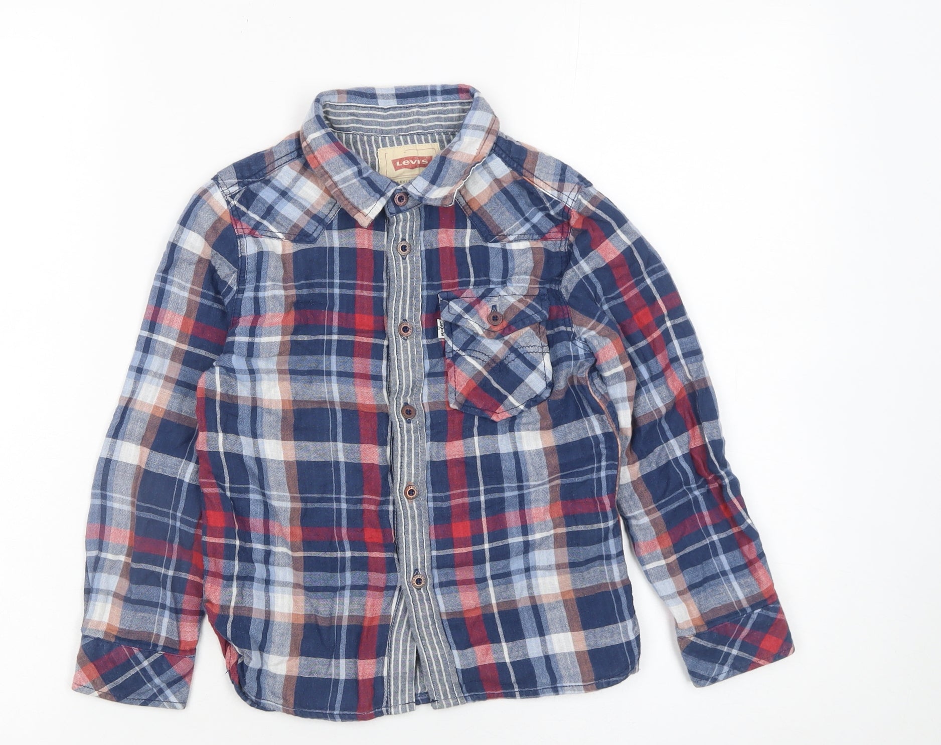 Levi's Boys Blue Check Long Sleeve Button-Up Shirt Size 6 Cotton