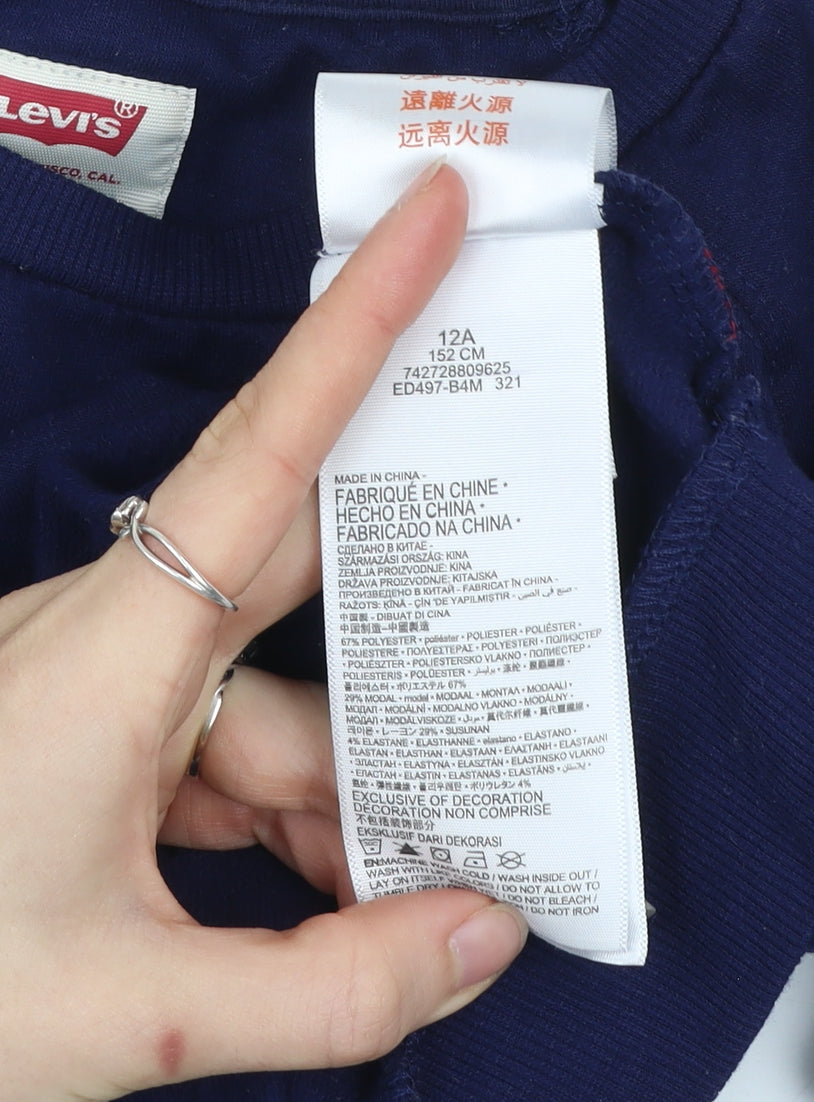 Levi's Girls Blue Logo Crew Neck Long Sleeve Pullover Sweatshirt 12 Years