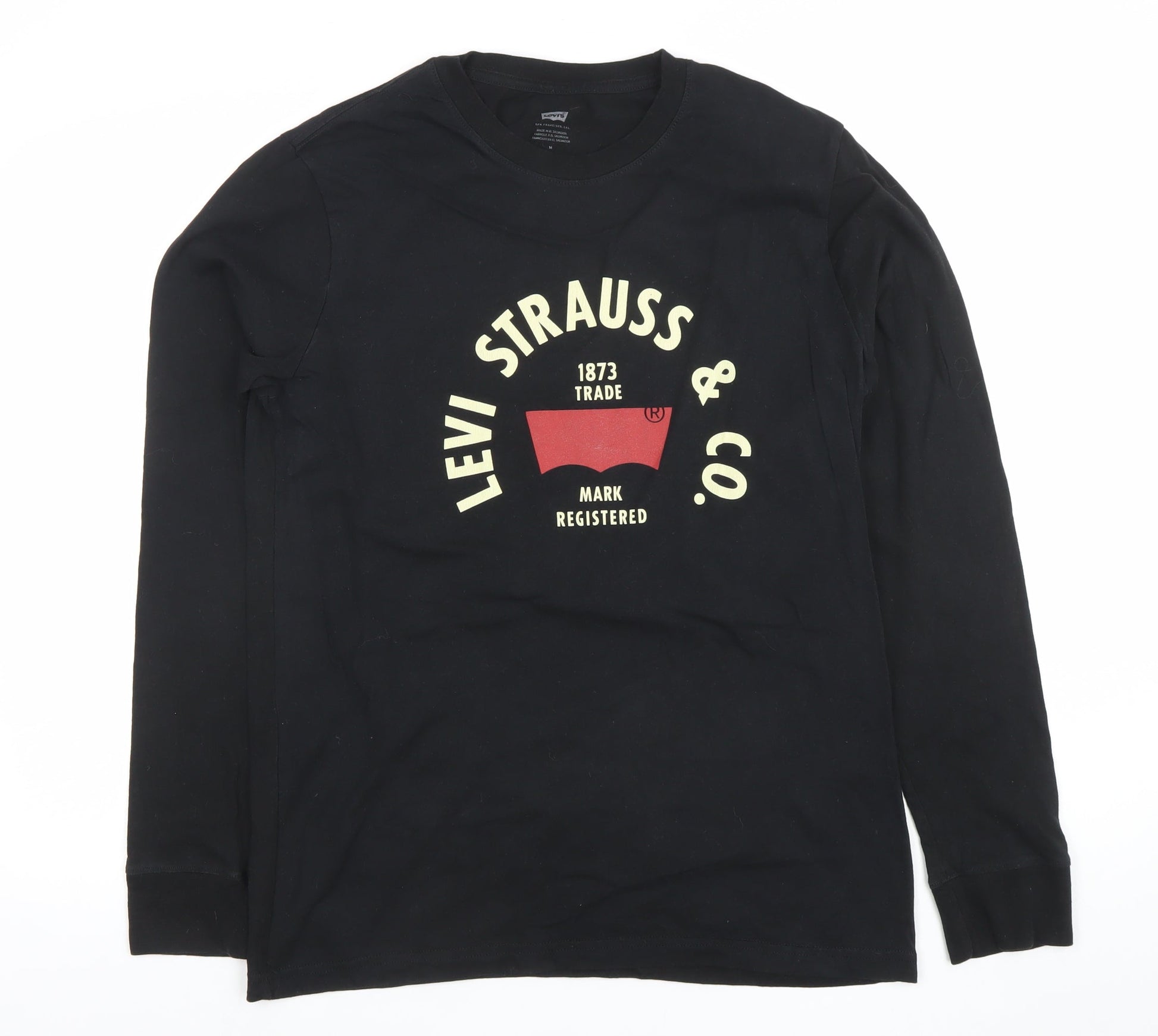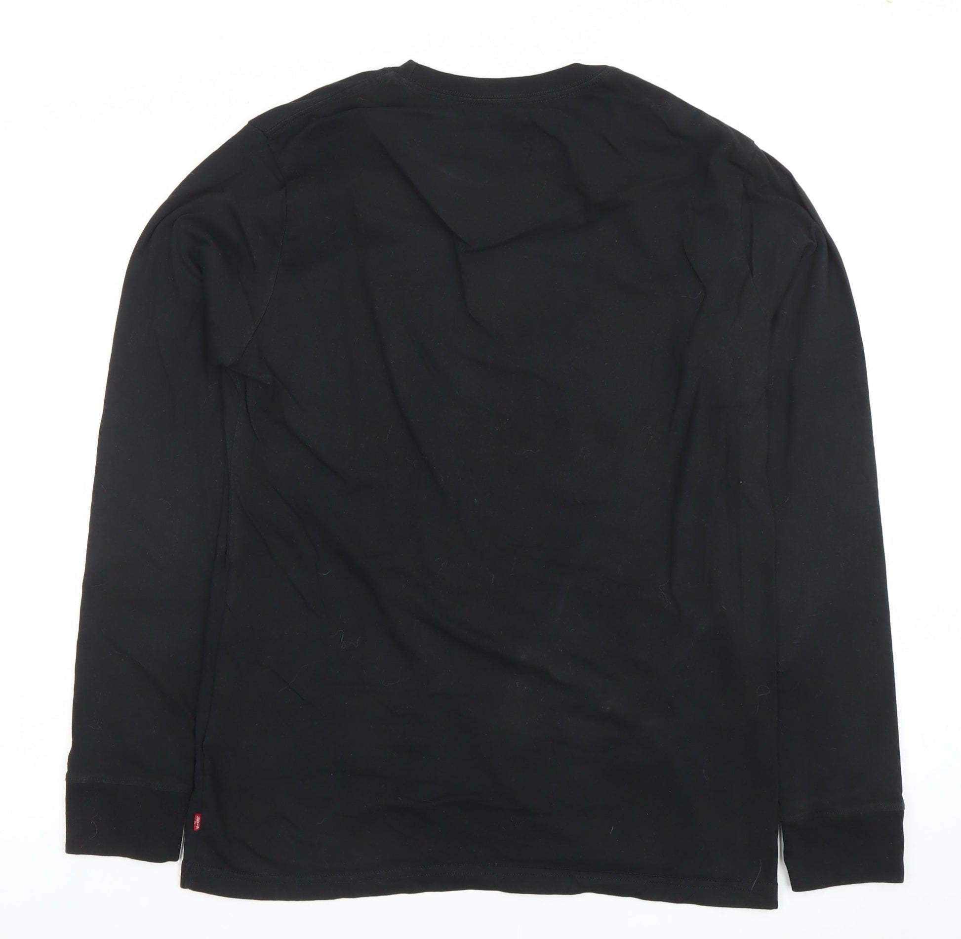 Levi's Men's Black Long Sleeve Logo Crew Neck Cotton T-Shirt M