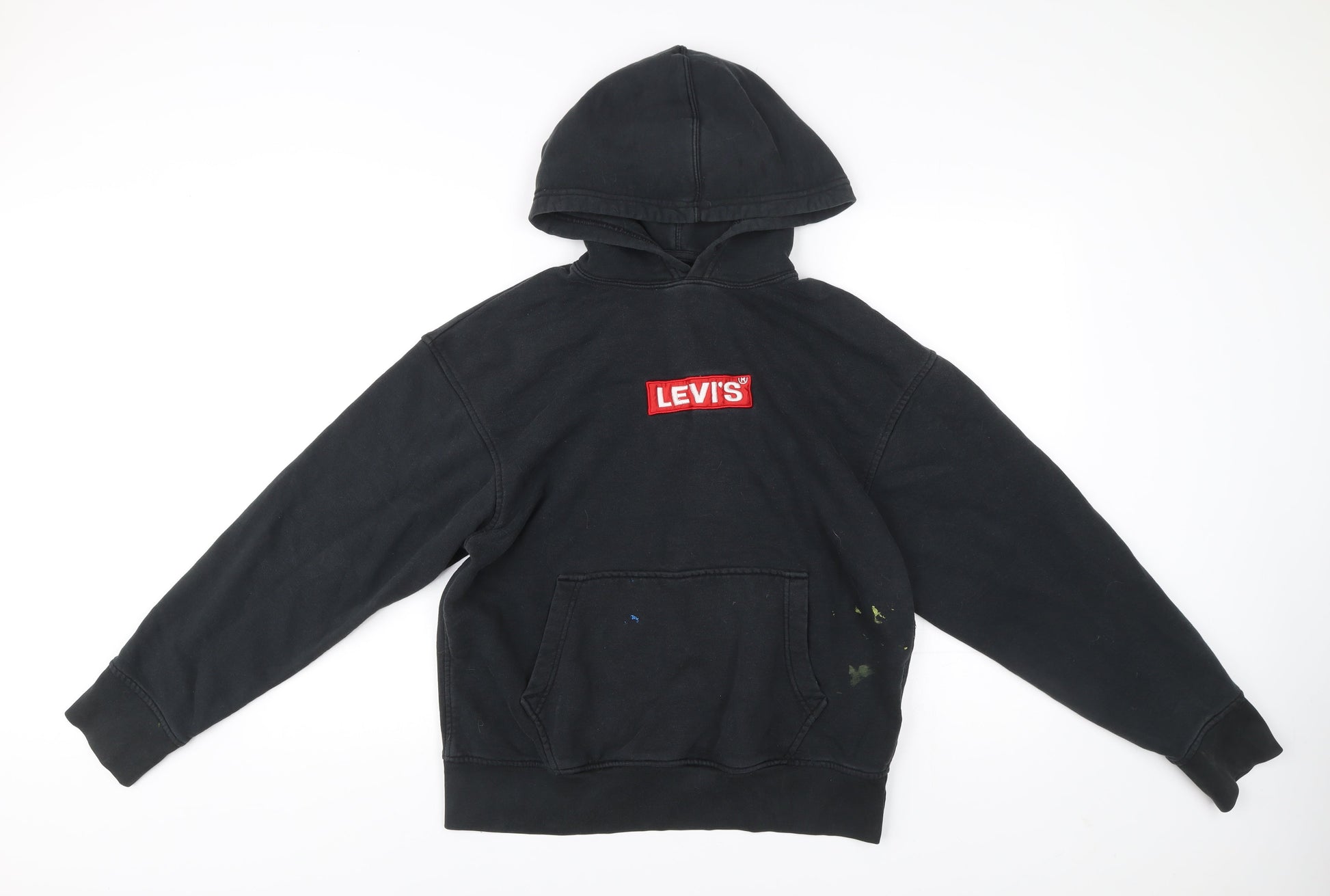 Levi's Men's Black Relaxed Fit Pullover Hoodie M Logo Fleece