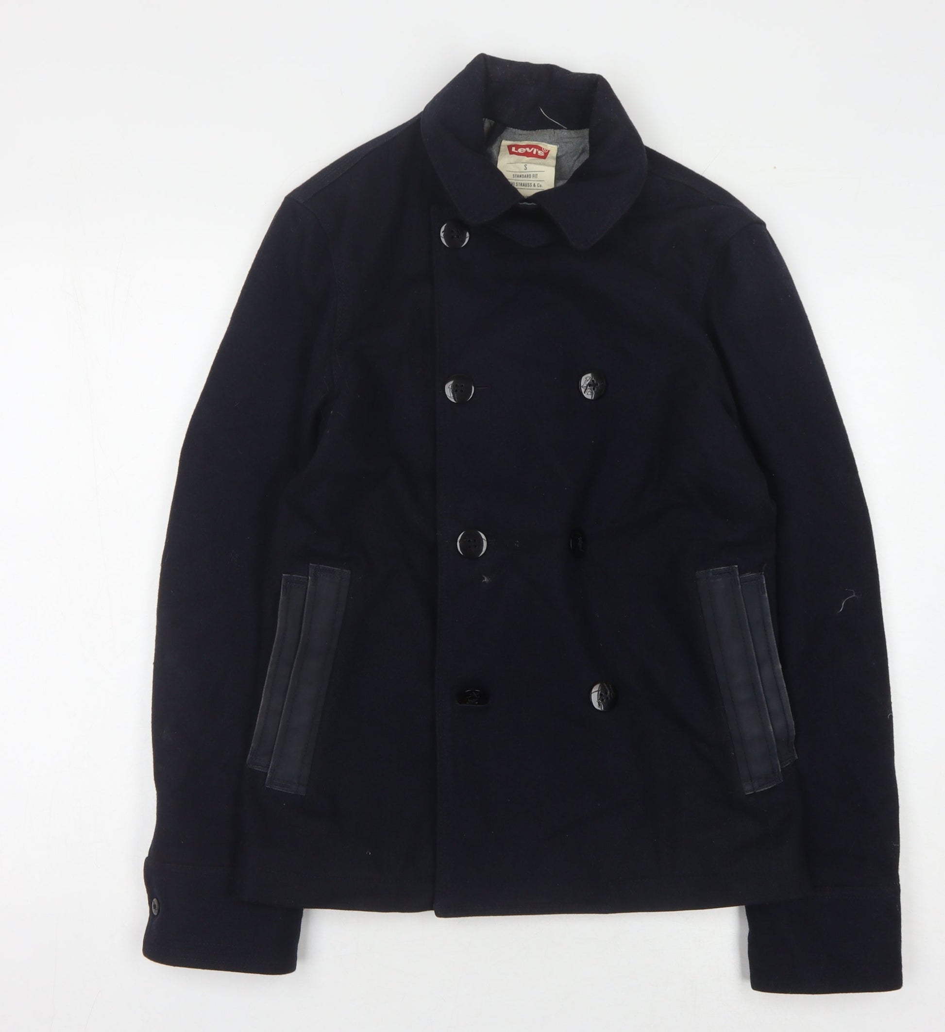 Levi's Men's Black Wool Pea Coat, Size S - Classic Style