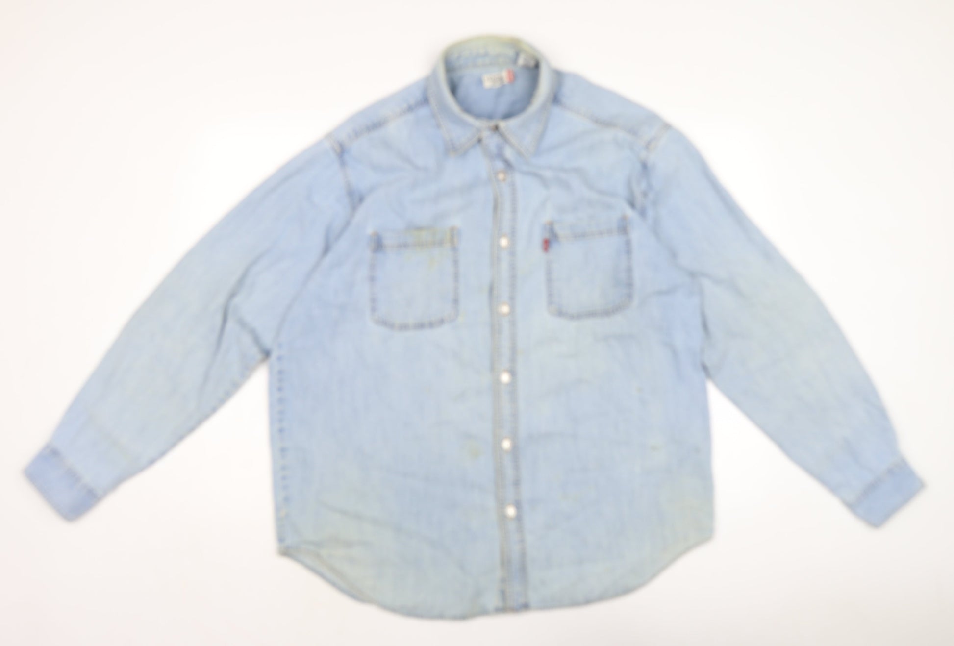 Levis Mens Blue Cotton Button-Up Size L Collared Button