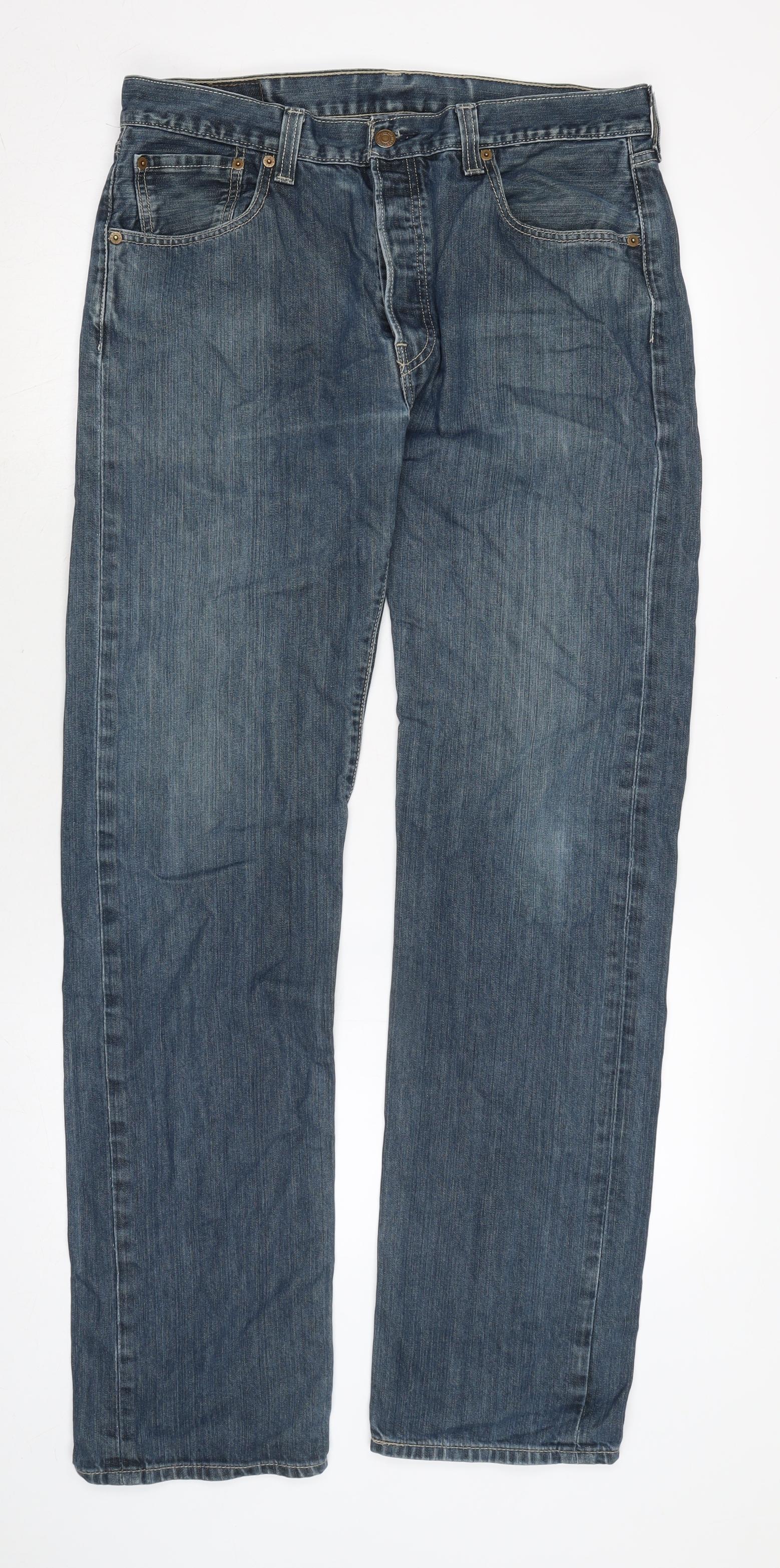 Levis Mens Blue Cotton Straight Jeans Size 31 in L32 in Regular Button