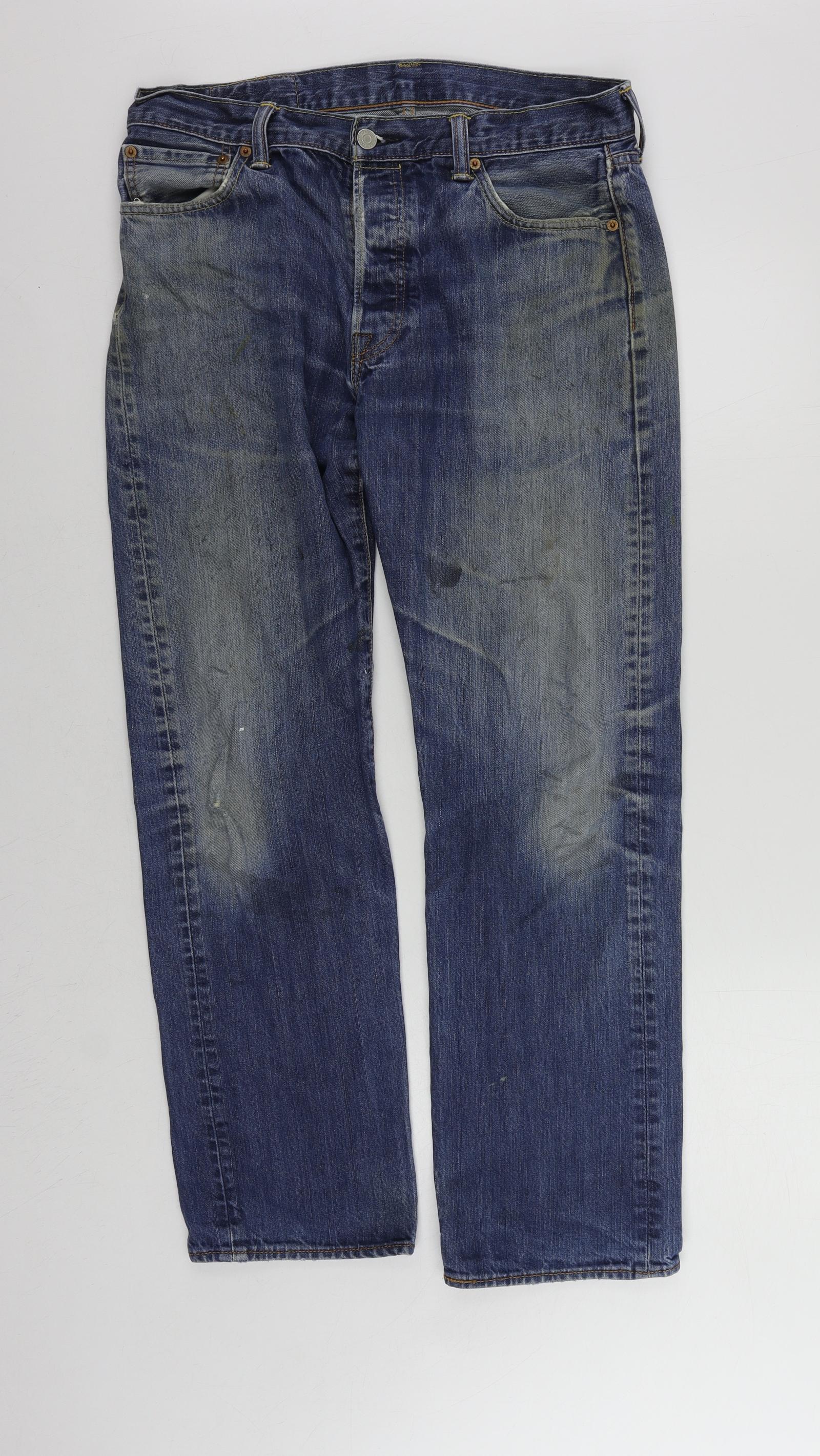 Levi's Mens Blue Cotton Straight Jeans Size 34 in L32 in Regular Button