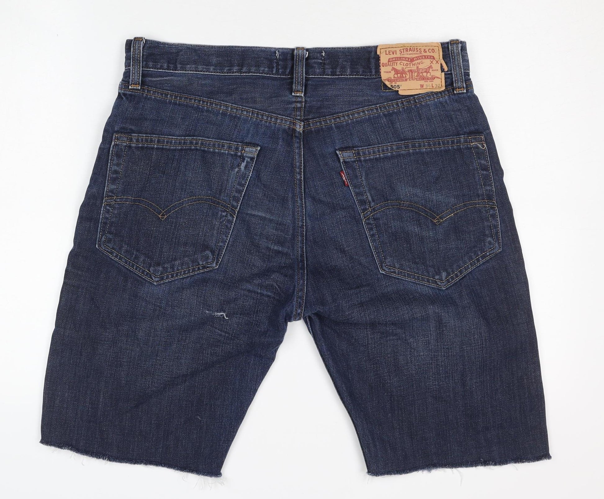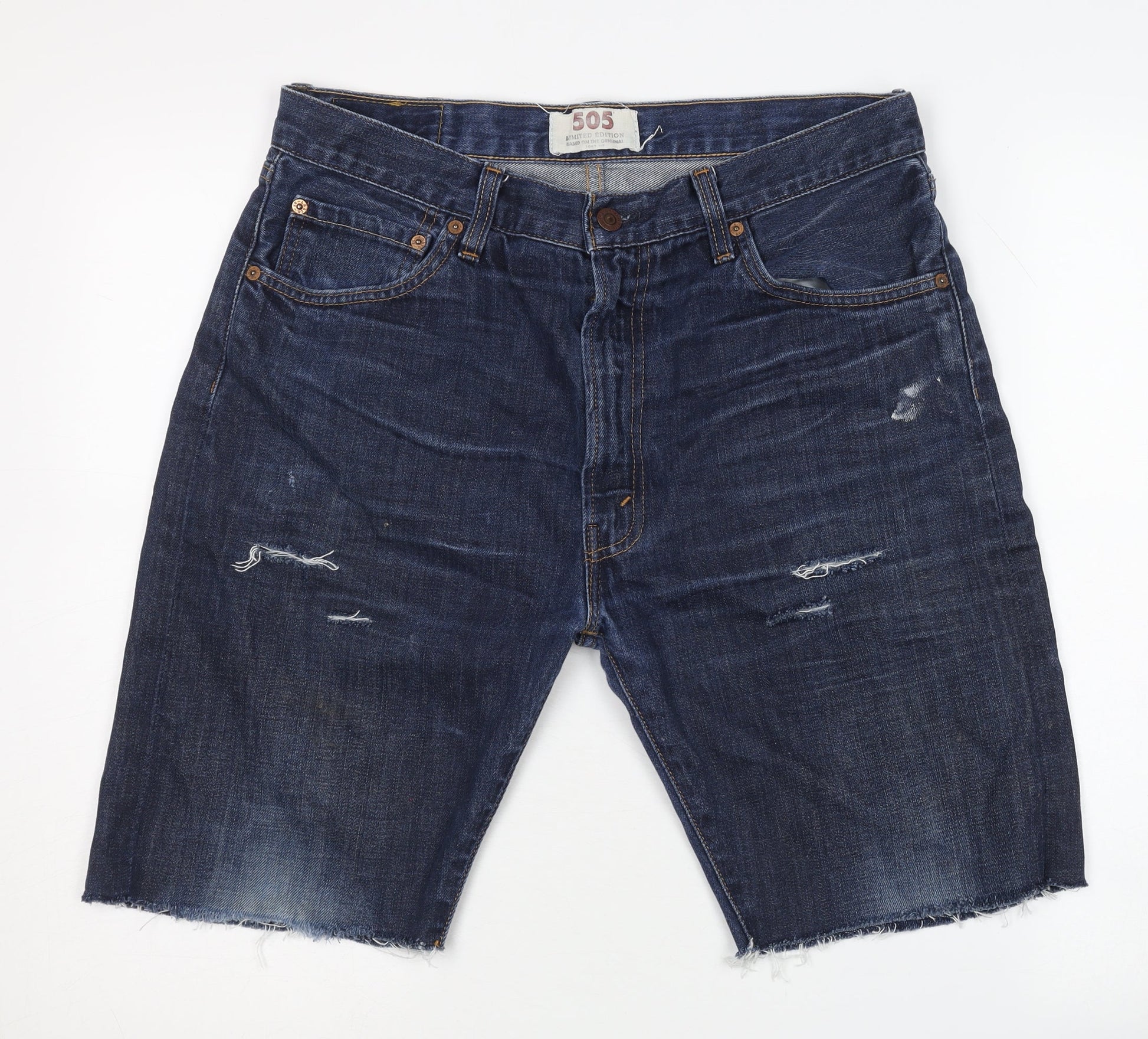 Levi's Men's Blue Denim Shorts, 505, W34 L32, Distressed Casual