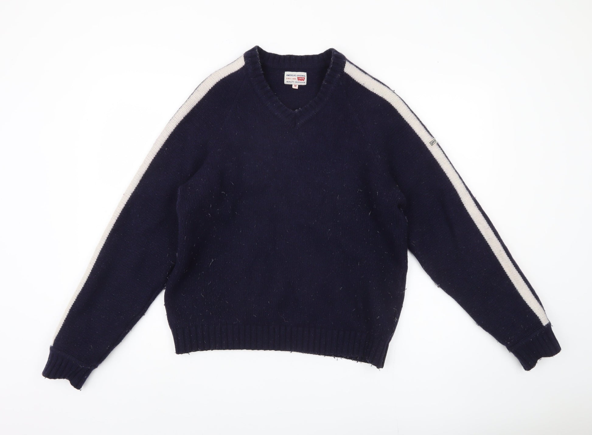 Levi's Men's Blue Wool V-Neck Pullover Jumper M