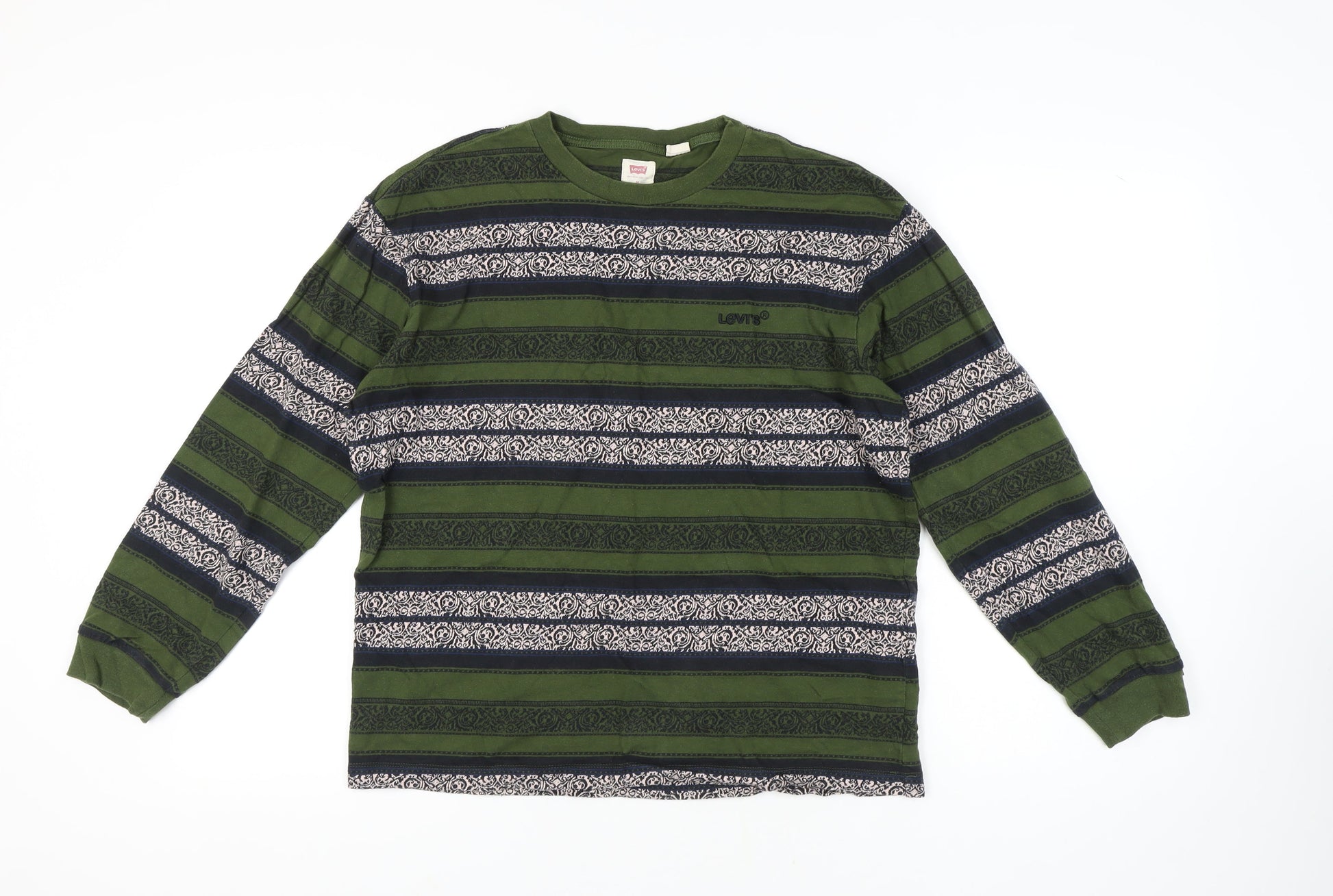 Levi's Men's Green Striped Long Sleeve Relaxed T-Shirt