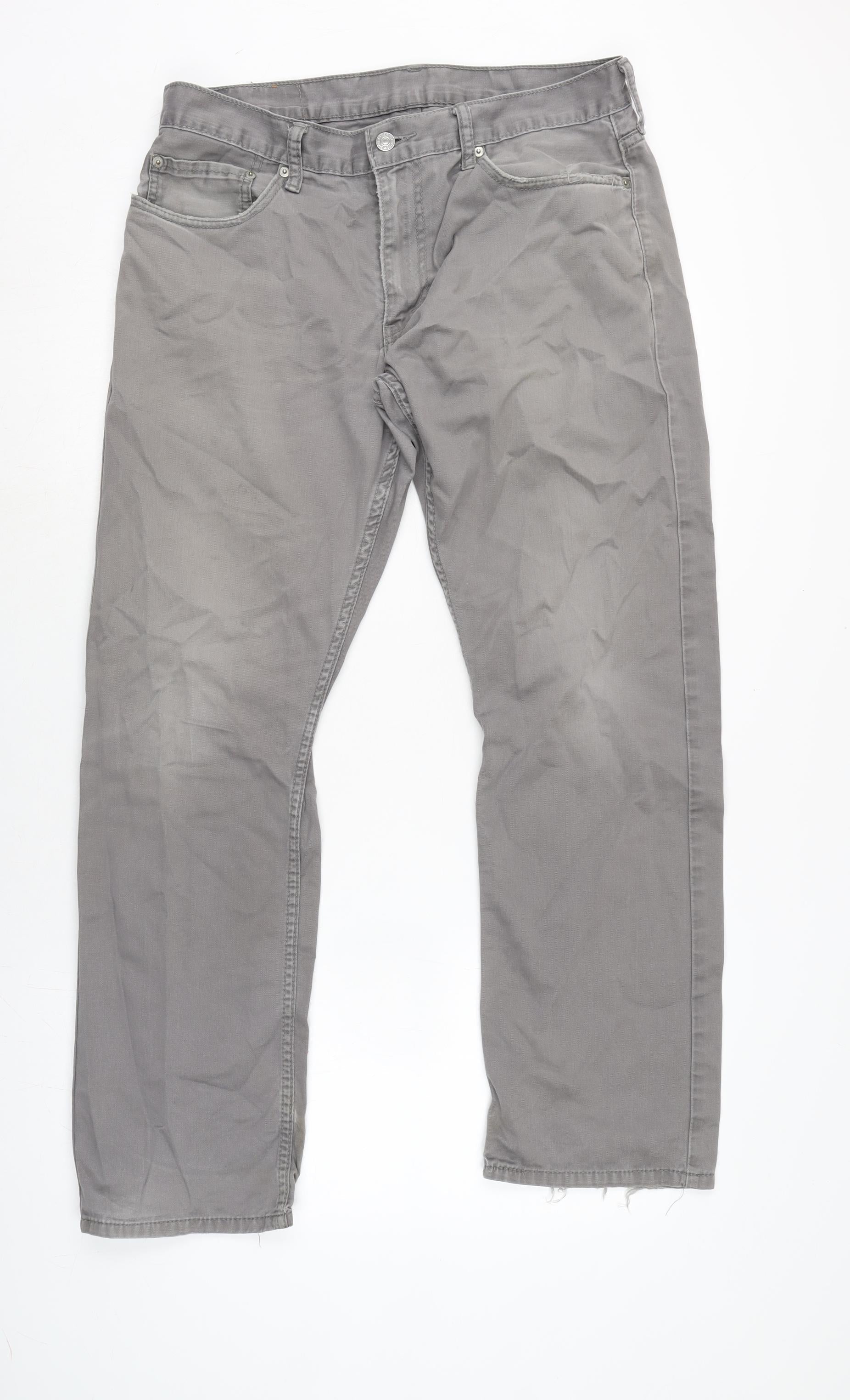Levis Mens Grey Cotton Straight Jeans Size 34 in L30 in Regular Zip
