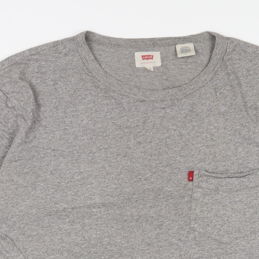 Levi's Mens Grey Cotton T-Shirt Size M Crew Neck - Logo, Embroidered