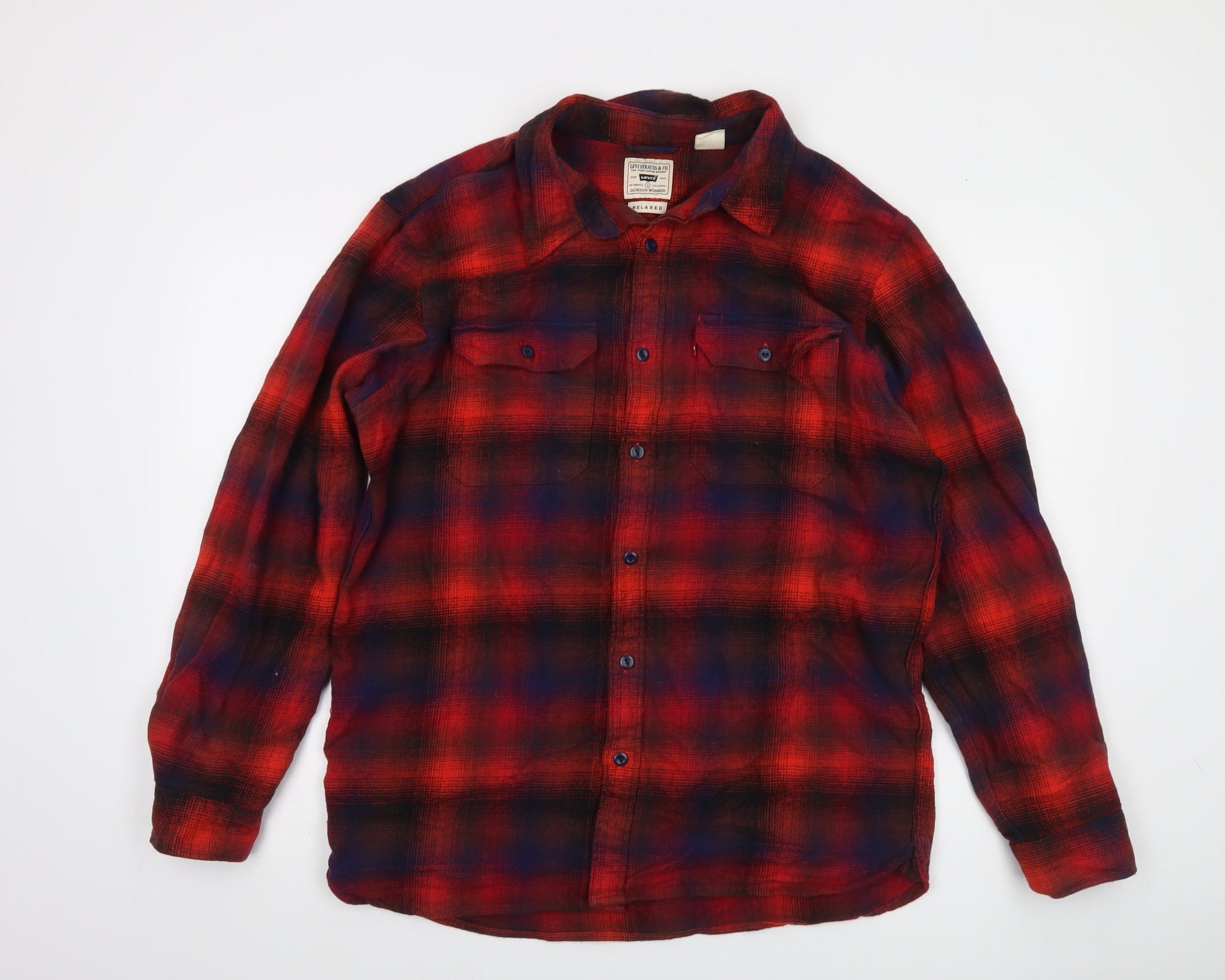 Levi's Men's Red Checked Flannel Jackson Worker Shirt Size M Relaxed Fit