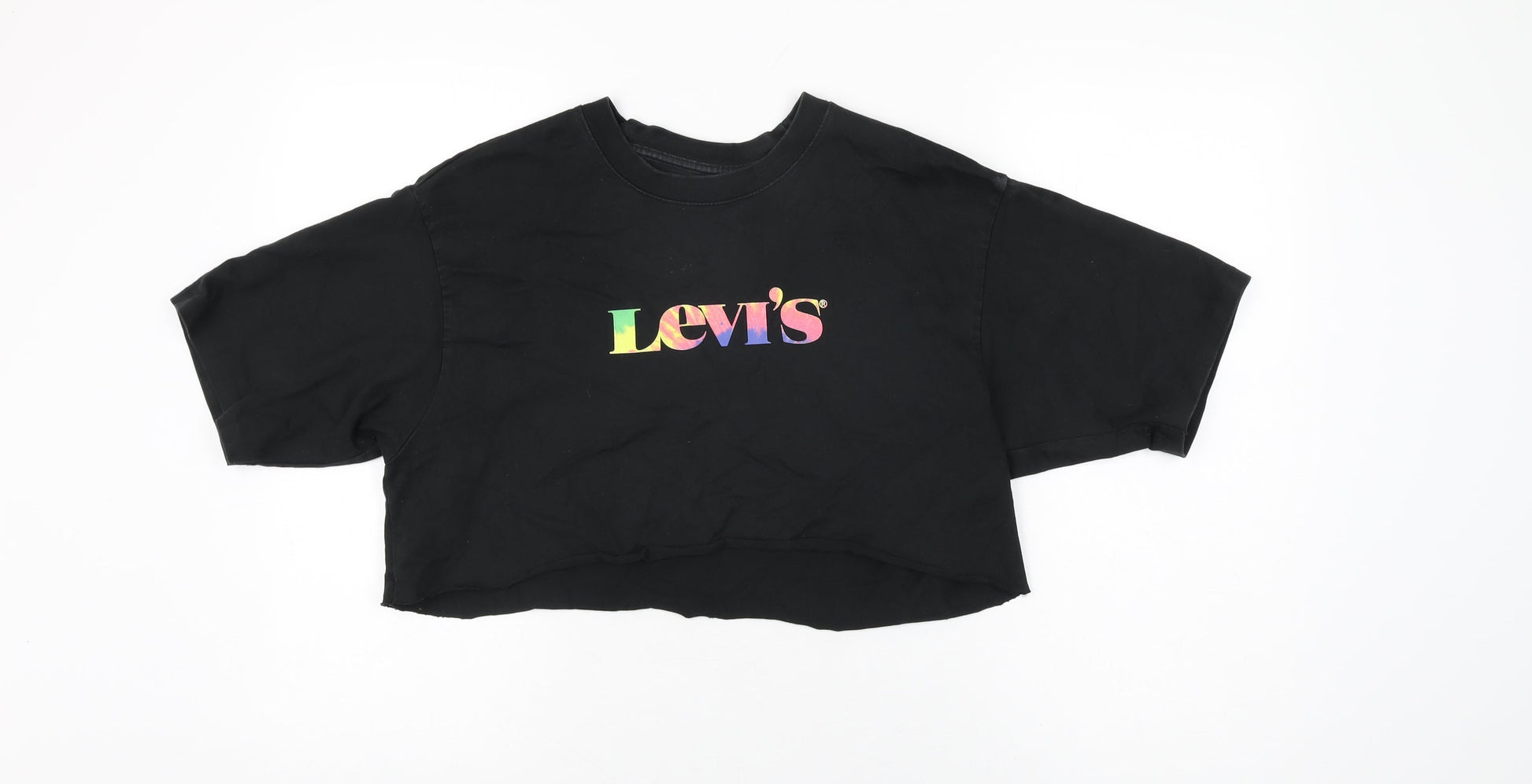 Levi's Womens Black Cotton Cropped T-Shirt Size S Round Neck