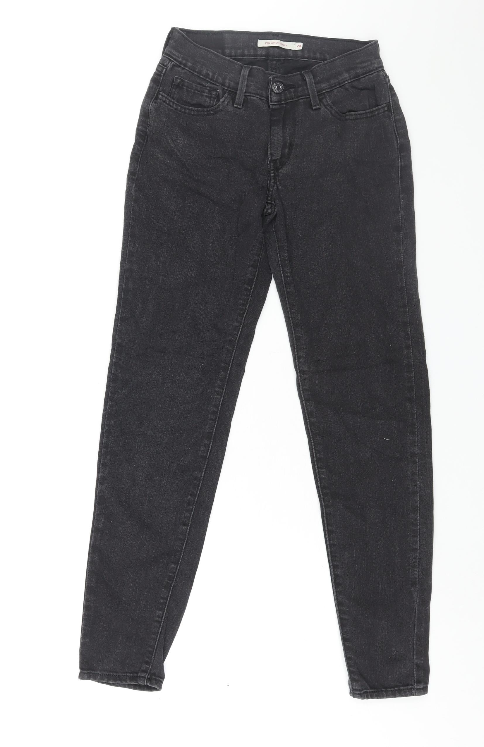 Levi's Womens Black Cotton Tapered Jeans Size 24 in L28 in Regular Zip