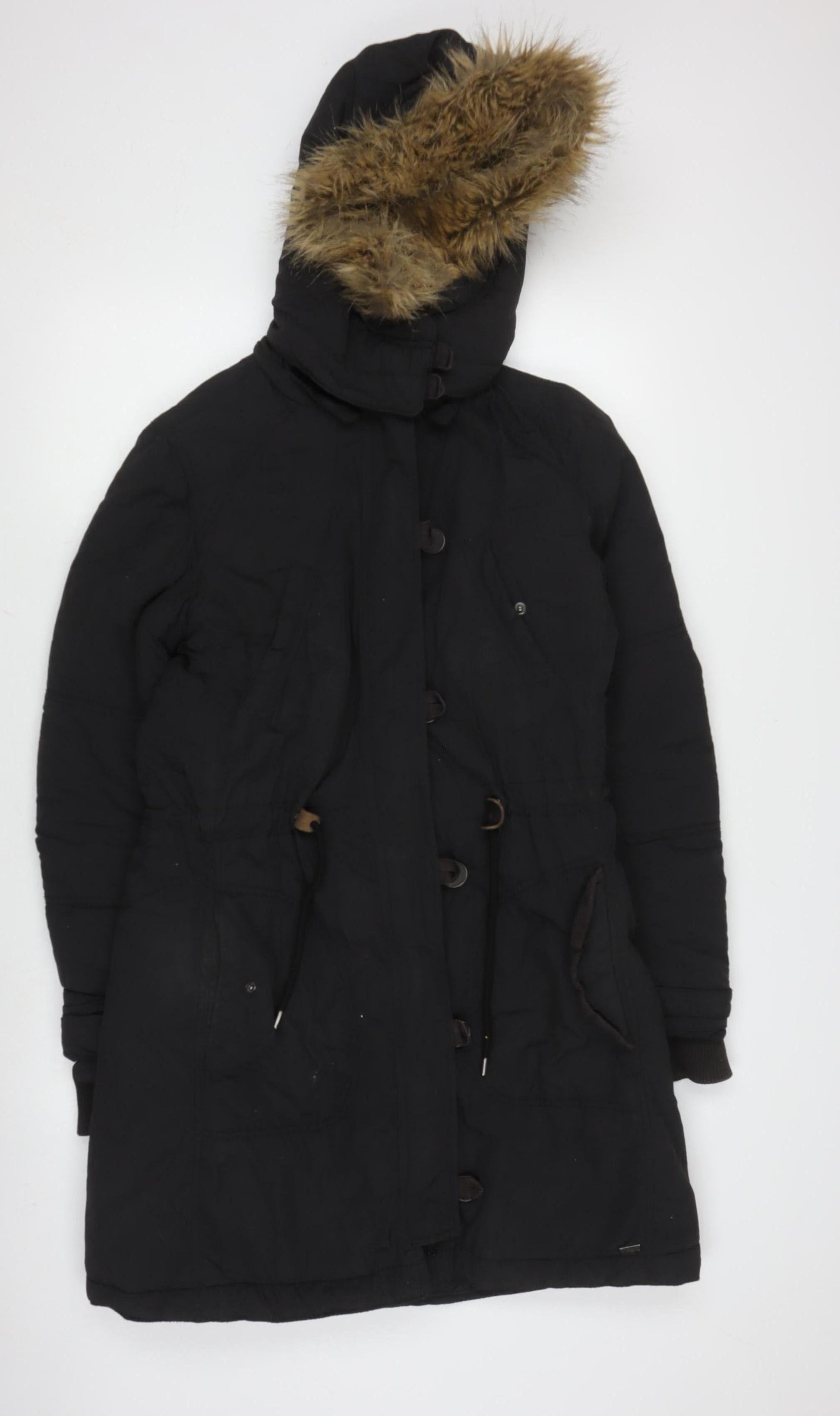 Levi's Women's Black Fur Trim Parka Coat, Medium