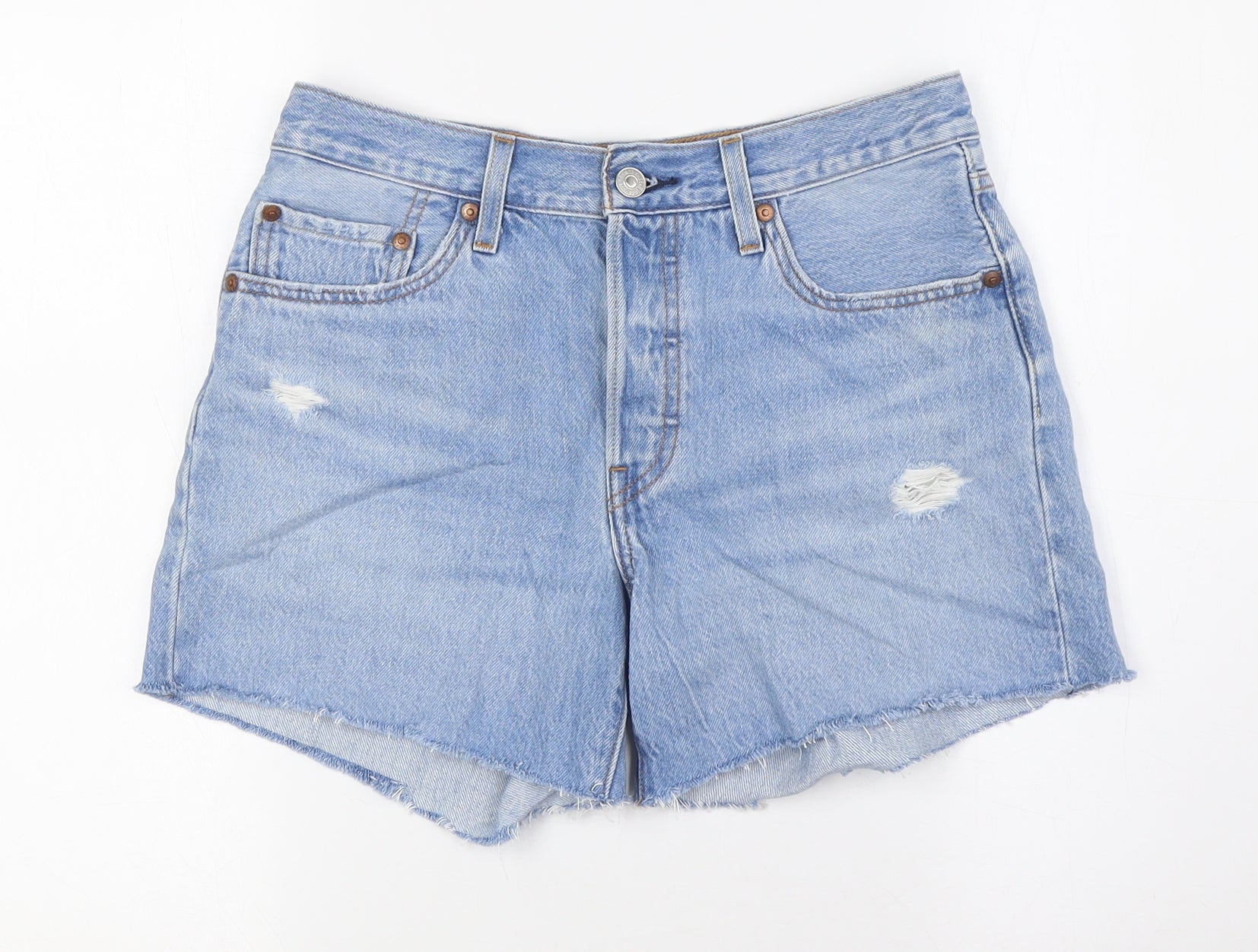 Levi's Womens Blue 100% Cotton Basic Shorts Size 27 in Regular Button - Raw Hem