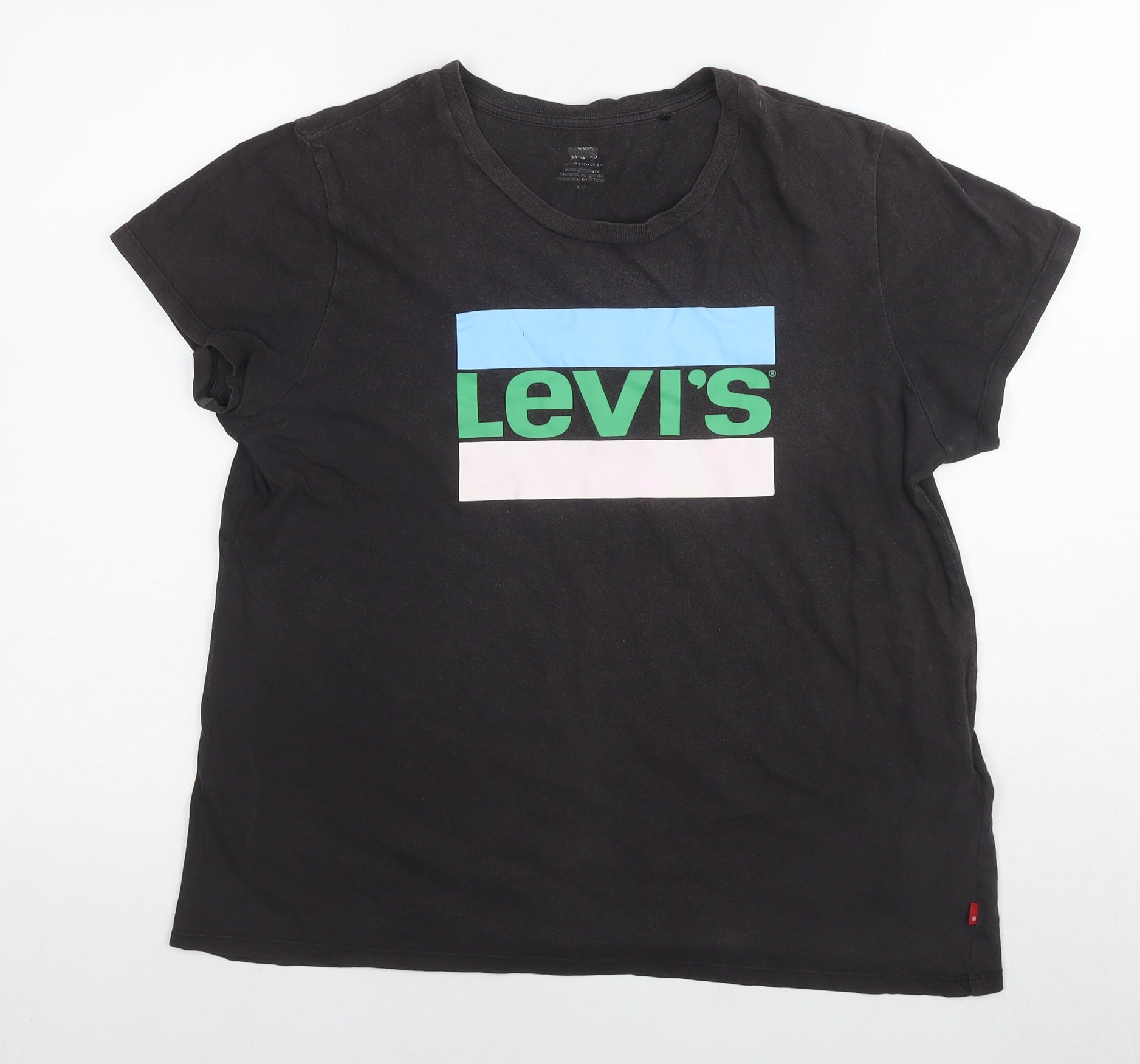 Levi's Womens Brown Cotton Basic T-Shirt Size L Round Neck - Logo