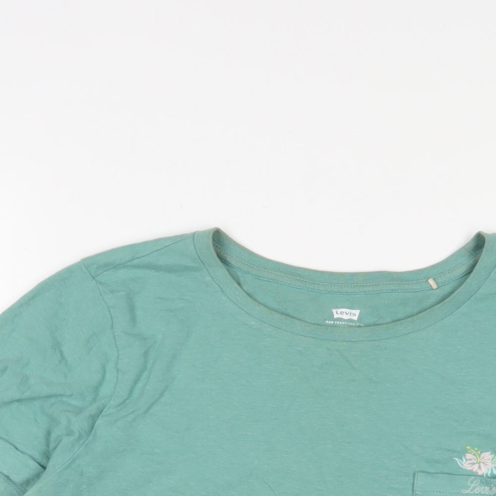Levi's Womens Green Cotton Cropped T-Shirt Size M Crew Neck - Logo, Embroidered