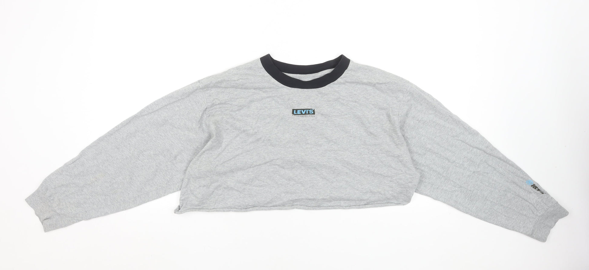 Levi's Women's Grey Cropped Long Sleeve Crew Neck T-Shirt Size M